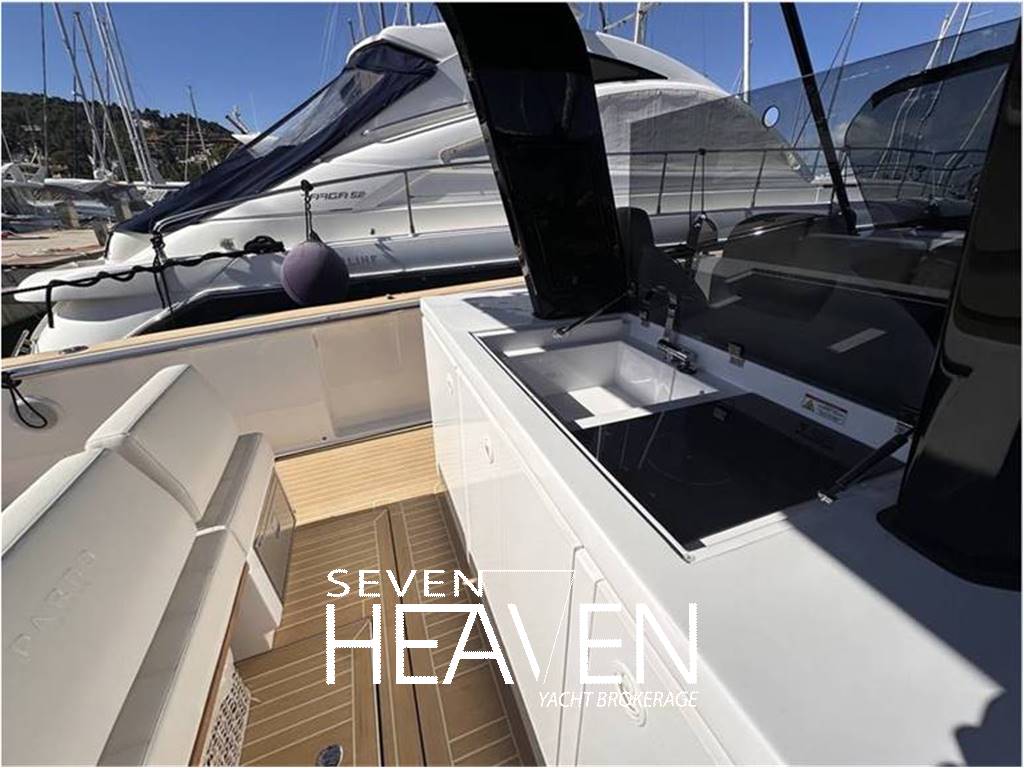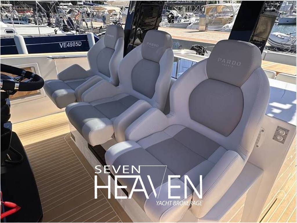 T-top nero in carbonio con bimini elettrico integrato Tendalini laterali e posteriori dal T-top Tessuti esterni in Silvertex ice Scaletta da bagno con tientibene integrato Tavolo in pozzetto trasformabile in prendisole con sistema elettrico sali-scendi e cuscineria extra Tendalino di prua con pali in carbonio amovibili Schienali panchette di poppa trasformabili in prendisole Parabrezza in vetro Doccia calda fredda in pozzetto Sistema elettrico ancora Trefoil 15 KG 50 metri catena 8 Parabordi con calza 2 Cime ormeggio Coperture per tavolo pozzetto, sedute e prendisole di poppa, consolle e sedili consolle Maggiori info e foto su www.7hyb.it Contatto diretto: Filippo Martini +39 392 4909184 - Gianfranco Cantarella +39 347 3399872 |