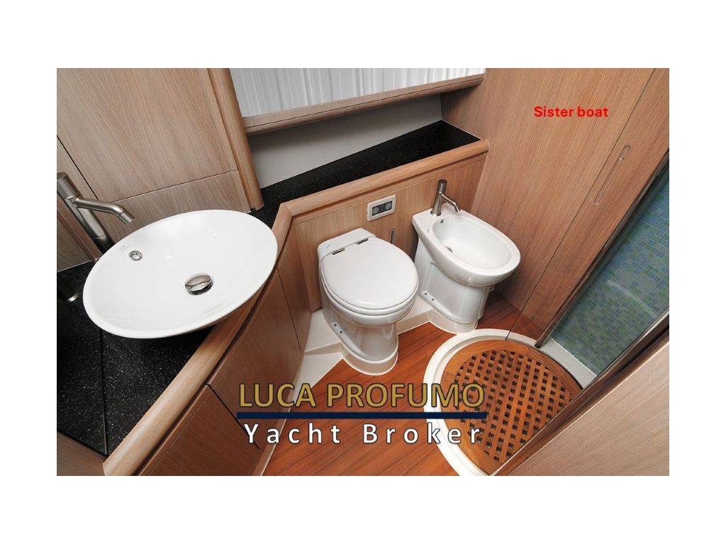 Notas internasCabina ospiti destra con due letti in piano Cabina ospiti sinistra con letto matrimoniale, bagno condiviso con cabina doccia Cabina equipaggio con bagno Cucina in basso Salone con divano a U Notas de la instrumentaciónPlotter Furuno NavnetRadar Furuno Navnet Scandaglio Furuno Navnet Tastiera Furuno Navnet Pilota Furuno VHF Furuno Contamentri catena Intruder Notas de armamentoElica di prua, Elica di Poppa, Passerella Idraulica, Generatore 9kw, Climatizzatore, porta laterale, pozzetto in teak, camminamenti laterali in teak, tendalino pozzetto, cuscineria pozzetto, cuscino prendisole a pruaAntenna TV DT, Antenna TVSat, televisioni in tutte le cabine con decoder Cucina: fuchi a induzione n.4, forno, lavastoviglie, frigorifero |