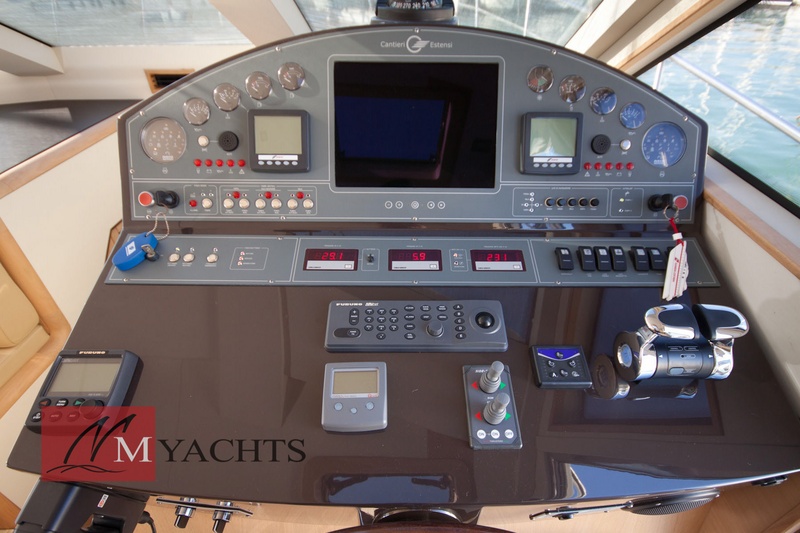 Notas internasNotas de la instrumentaciónTodos: piloto automático Radar Furuno Gps Vhf Eco registroNotas de armamentoAire acondicionado doble popa a combarse generador de cabrestante de 13KW Mase retráctil hidraulica bajo la cabina magia de Besenzoni de pescante telescópica retráctil en la cubierta de puente para el lanzamiento de la licitación proa de hélice/arco, teak cockpit plataforma y toldo de sol cabina cojines passavanti antena de satélite Tv seguro desmontable con combinado secadores de lavadora en todas las cabinas y comedor |
