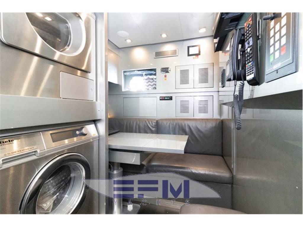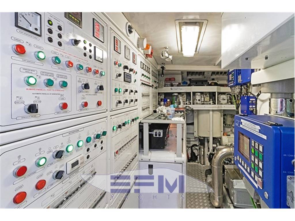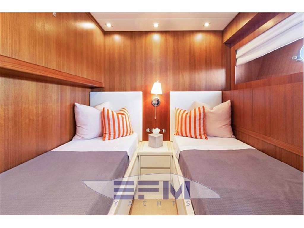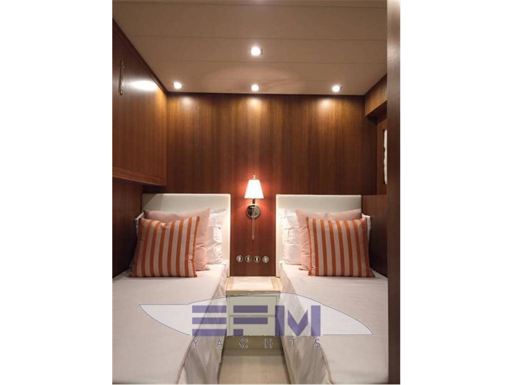 Notas internasfull beam Master amidships, VIP forward, a Double and a Twin cabin with Pullman accommodating 9 Owners/Guests Berths: 4 Heads: 4 Sleeps: 9 Staterooms: 4 Crew Berths: 6 Crew Sleeps: 6 Crew Heads: 2 GALLEY EQUIPMENT Galley Equipment: • Stainless steel sink • 2 Refrigerators + 1 in the fly bridge • Miele Cooking hot plate with four electric plates • Miele dishwasher - professional • microwave • Miele hood with expanding filter • Deep freeze • Storage cupboards/drawers • Ice maker • Bosch washing machine Notas de la instrumentaciónComplete electronic instrumentation Simrad and Furuno: MTU computerized system for complete management of navigation parameters: Log, Echo sounder, Automatic pilot, (water temp, rudder and compass) - Plotter, radar 24 mg - computerized instrumentation for management control check MTU , monitor and control cameras aft engine room ,ICOM VHF portable ,TV SHARP 40 in owner's and 20 'in each cabin and 42' in the cockpit and saloon disappeared - Intercom, 2 Satellite antennas, antenna for mobile TV. and internet, radar, electronic throttles, computer management and light level indicators, dual control windlass with chain counter. Optic and acustic alarm for various systems / services -Notas de armamentoCCTV system, Ice maker, bow and stern thrusters, hydraulic Hangar tender, electric blind in the cockpit, plus retractable gangway Edan, watermaker 200 lt / h, icemaker in cockpit, bow, cockpit, walkways and allanguta swimming platform aft deck, 2 mooring winches aft, two generators Kohler, Air condition in every room separate dual heat pump, ice maker, dishwasher Wirlphool appliances, Refrigerator with freezer 140 lt. , Washing machine + dryer, sunbathing full forward, full settee aft deck, cockpit table VTR coprifinestrature and closing stern - electric toilet Tanks - complete safety equipment x 12 people, double anchor windlass at the bow with electric control and reference in the wheelhouse, trackvision satellite TV system, audio and video systems in all rooms, fridge and freezer, 2 + Icemaker fridge - Stove 4 burner hob - microwave TV Stereo TV system - system x Dry chain, angle bar, electric winch, heating, intercom, electric toilet system with black water, trim tabs, outdoor shower mixed, Set automatic fire engine room, fully closed cockpit - sheets cover sofas and outdoor cushions - Mini-bar external pocket and hide-away TV in cockpit - System cameras closed circuit stern and engine room - the Miele Appliances, stove, Microwave, Oven, Fridge and Dishwasher - Arneson Drive completely overhauled in 2009 - Hangar electro x Tender - Sat system with decoder and TV Sharp 42 'living room and stateroom, 42 '+ 3 TV in cockpit 14' cabins - gangway and swimming ladderDECK EQUIPMENT • 2 x aft deck warping winches • 1 x anchor windlasses with bridge and bow control lofran projet 4x 2500w 24v • 1 x 75kg anchors with 12mm galvanised iron chain, 100m long • Bow shield with anchor locking and washing plant • 2 x side fair leads • 2 x mooring bits and 2 x fair leads at bow • 4 x side bits • 1 x step swimming ladder • 1 x remote controlled electric gangway with handrail + 3 portavive remote • 1 x hooks • 4x mooring lines and 2 x 50 m and 2 25m towline Fore bridge and aft bridge • 3 sun materas • Bimini top tent • Port bar with sink, fridgomar ice maker, big drinks fridge • Covers for all flybridge furniture Life raft Life jacket SAFETY & SECURITY EQUIPMENT Full BV Safety Equipment Fire extinguisher electronic system Hand operated portable powder extinguishers installed in all rooms including the engine room and on the deck Epirb sart Sea-water system Smoke and heat detectors in all rooms. Benzene Vapour security system in the garage |