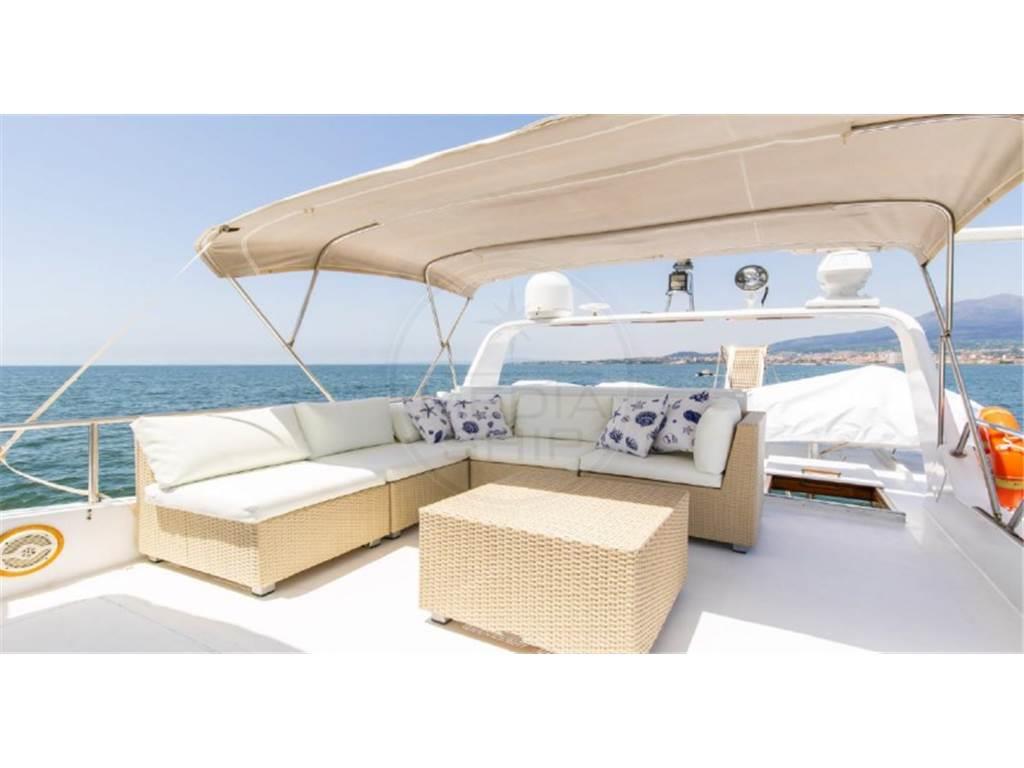 Notas internasNotas de la instrumentaciónBussola, Ecoscandaglio, GPS, Log, Pilota automatico, Radar, Radio VHF.Notas de armamentoAllestimento tecnico e di coperta:Ancora, Passerella, Piattaforma, Scaletta da bagno, Tavolo pozzetto, Winch. Dotazioni domestiche di bordo: Aria condizionata. Intrattenimento: TV. Cucina ed elettrodomestici: Forno. Tappezzerie: Bimini. |