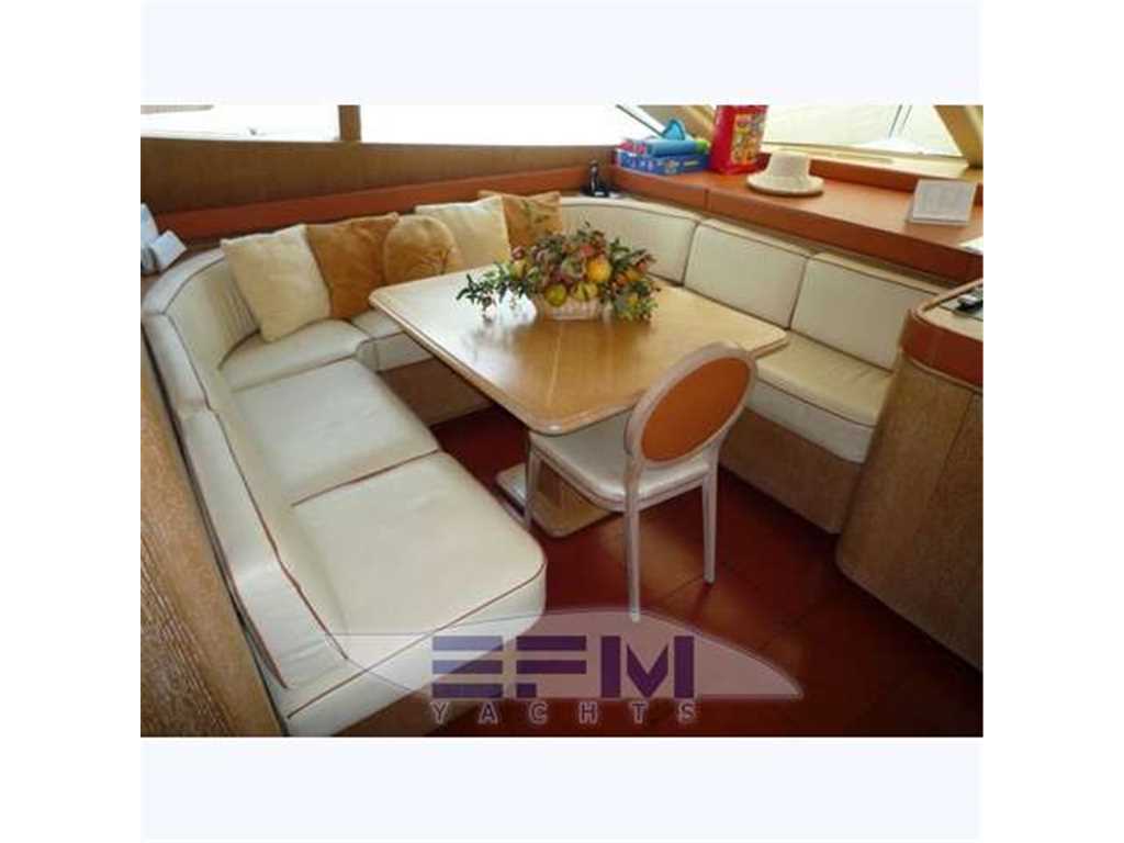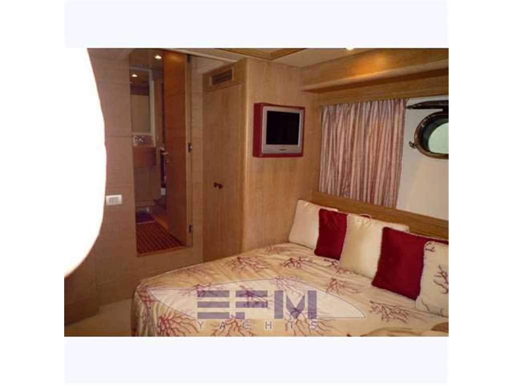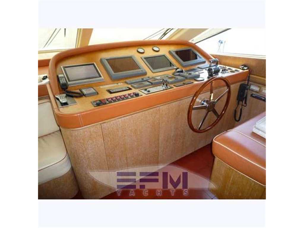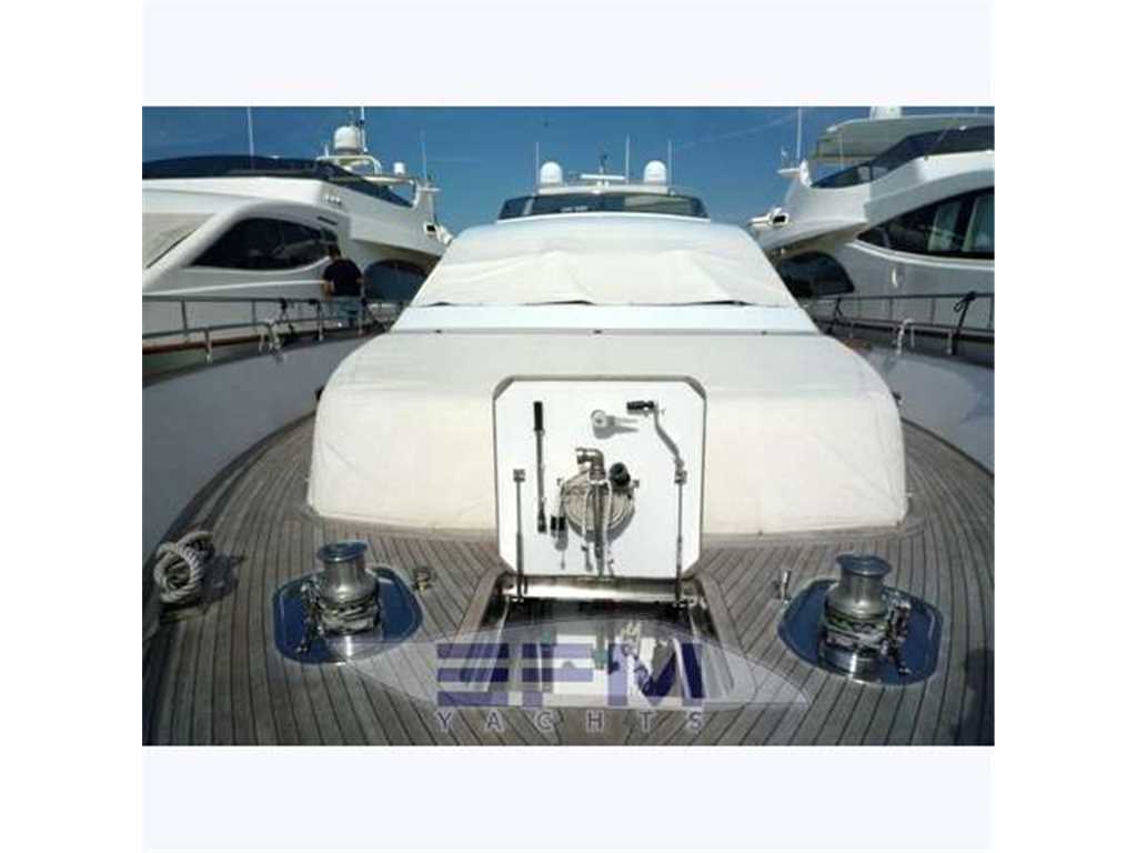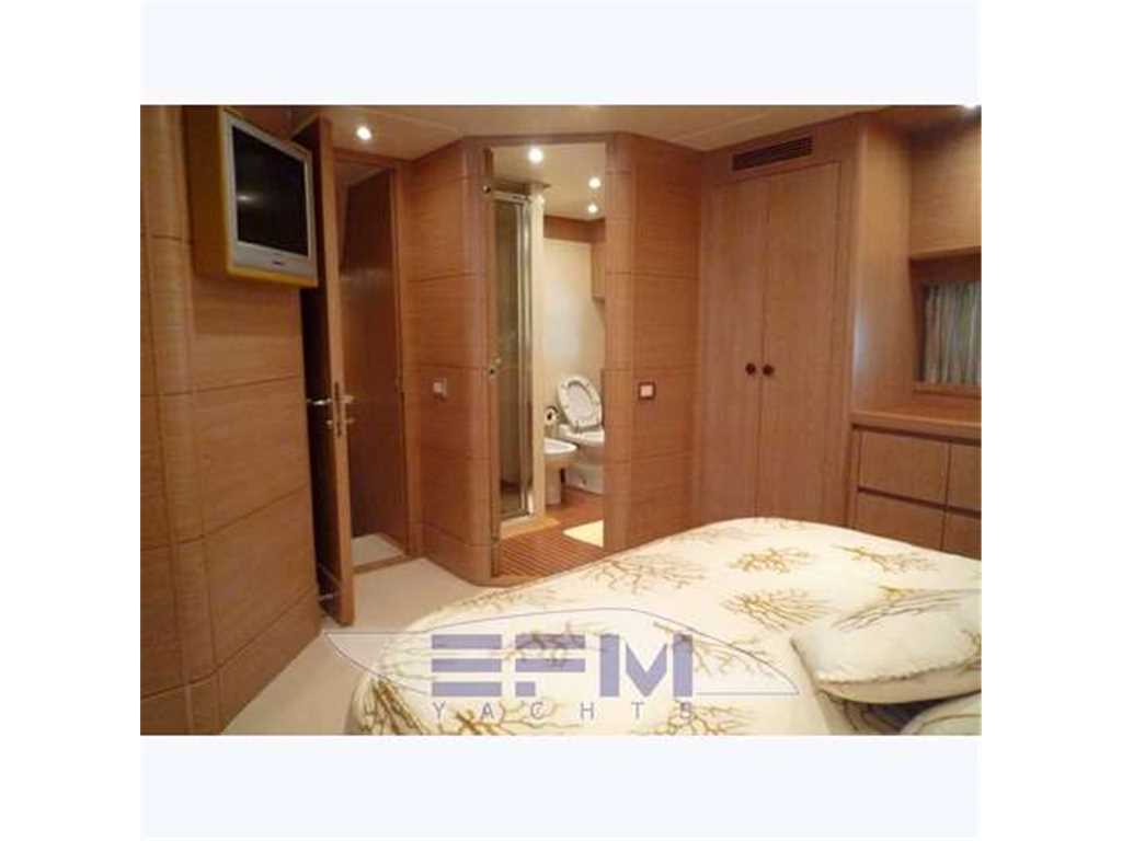 Bow and stern thruster - Full teak cockpit, teak, decks, fly - Air conditioning with dual group hot and cold thermostats in every room - Batek watermaker 200 l / h - 2 Kohler 28 kw generators. - Tender davit fly x 4 mt + Fb 40 hp - Double Sat SeaTel antenna for TV and Telephone Satellite Ski .. SHARP Aquos LCD TV 50 'lounge 26' owner, 20 'in 2 cabins - complete electronic instrumentation FURUNO double also repeated on flybridge - Furuno Radar 48 mg - all stainless steel appliances by Miele - Copricuscinerie fly - Dryer AEG - Bimini Fly - outdoor cushions in perfect condition - triple station stern drive - Installation of video surveillance SHARP-Panasonic camera + cockpit engine room - gel batteries - Dual axis of respect - automatic fire-fighting system, equipped workshop, air conditioning tropicallizzato from 40,000 btu with separate control in each ambiante , water purifying, sewage system, double freezer ice maker, 3rd refrigerator, shower with jacuzzi crew - hydraulic gangway - cushions in chairs and sun + sky full canvas bimini fly, crane fly on alo tender for motorcycles' water - decks cockpit and swimming platform aft deck - double mooring winches - courtesy lights and underwater lights blue - Complete Rattan per well 2 armchairs + 2 stools + table - hydraulic swimming ladder - aft shower mixed - socket 'x washing water at the quay bridg
