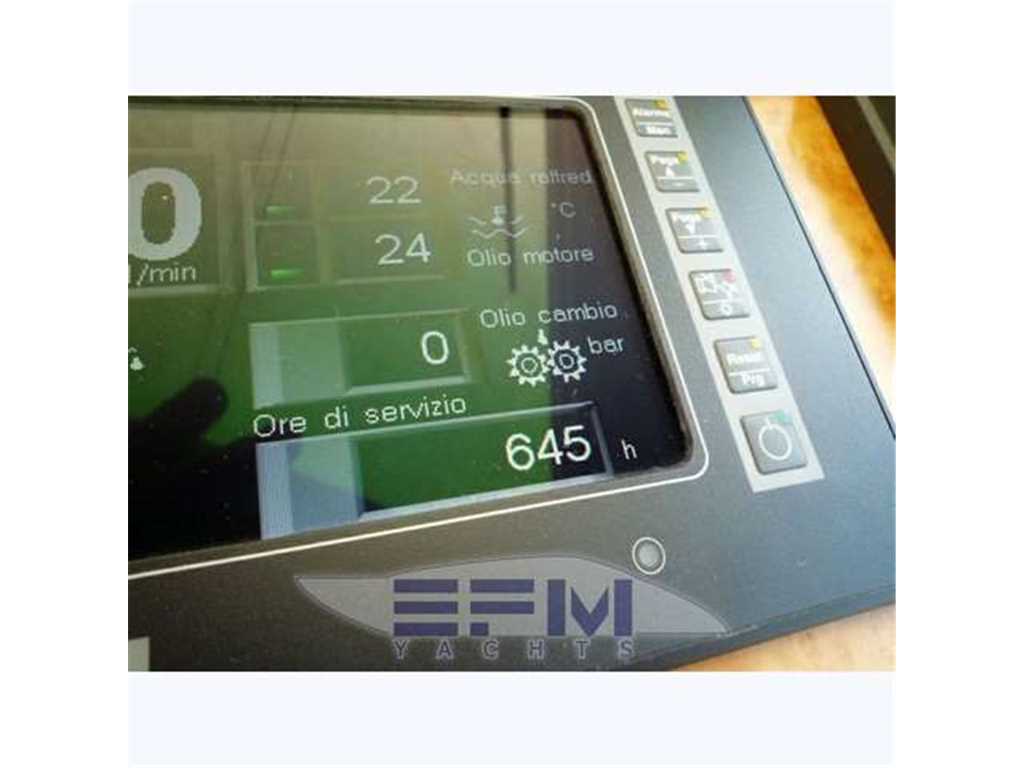 Notas de armamentoElica di manovra a prua e poppa - Full Teak pozzetto, plancetta, passavanti, fly - Climatizzatore con doppio gruppo caldo e freddo e termostati in ogni ambiente - Dissalatore Batek 200 Lt/h - 2 Generatori Kohler 28 kw. - Gruetta fly x Tender 4 mt + Fb 40 cv - Doppia antenna Sat SeaTel per TV Ski e Telefono SAT .. TV LCD SHARP Aquos 50', salone 26' armatore, 20' nelle 2 cabine - Strumentazione elettronica FURUNO completa doppia ripetuta anche sul fly - Radar 48 mg Furuno - Elettrodomestici tutti inox della Miele - Copricuscinerie fly - Lavasciuga AEG - Bimini Fly - Cuscinerie esterne in perfette condizioni - tripla stazione comando a poppa - Impianto di videosorveglianza SHARP- Panasonic con Telecamera sala macchine + pozzetto - Batterie al gel - Doppio asse di rispetto - impianto anticendio automatico, officina attrezzata, climatizzatore tropicallizzato da 40.000 btu con comando separato in ogni ambiante, potabilizzatore, impianto acque nere, ice maker doppio congelatore, 3 frigo, doccia con idomassaggio equipaggio - passerella idraulica a scomparsa - cuscinerie in sky complete sedute e prendisole + bimini in tela fly, gru sul fly per alo tender moto d' acqua - passavanti pozzetto e plancetta bagno di poppa in teak - doppio winches tonneggio - luci cortesia e luci subacquee azzurre - Completo in Rattan per pozzetto 2 poltrone + 2 sgabelli + tavolo - Scaletta bagno idraulica - doccia miscelata a poppa - presa d' acqua in banchina x lavaggio ponte -