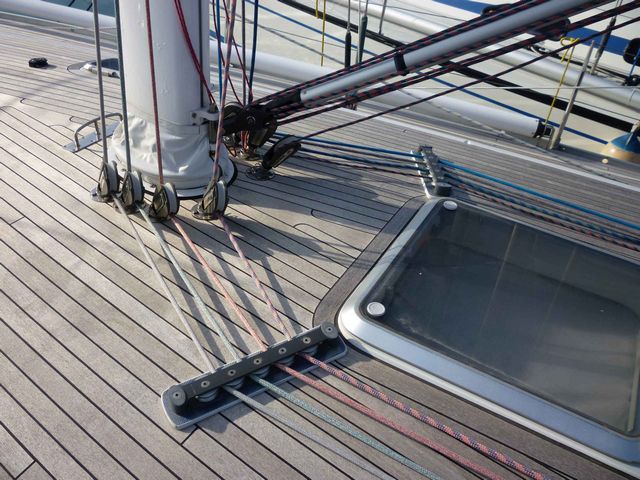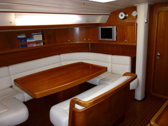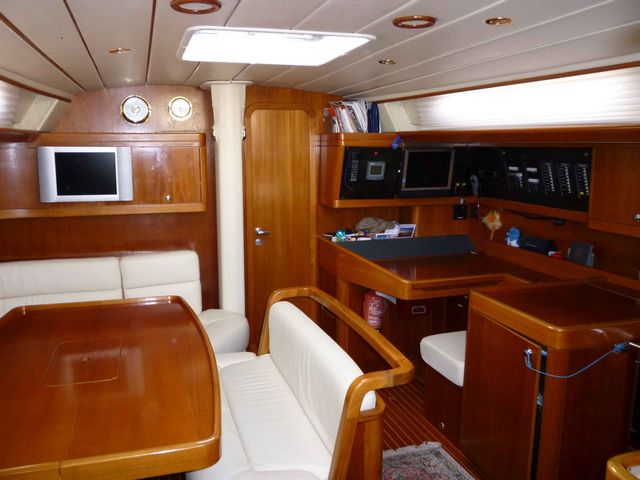 barco con casco blanco, la versión de tres cabinas y tres baños, gran comedor. interior de la teca y de piel blanca, cubierta de teca, todo. generador, potabilizador de agua, calefacción Webasto, popa plegable plataforma de baño. esquina correspondencia con un ordenador conectado con GPS. tres tornos eléctricos. completa instrumentación electrónica. spinnaker, génova, la vela mayor. revisado los inyectores turbo, bomba de combustible. Dag Peterson proyecto |