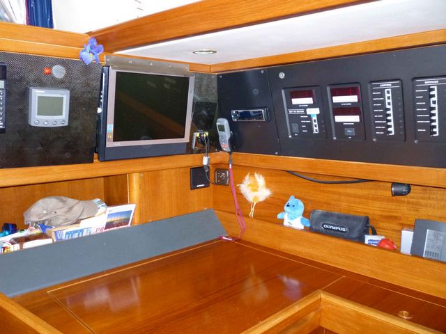 Notas internasNotas de la instrumentaciónordenador acoplado al equipo con un área de cartografÃa GPS, instrumentos de viento, radar Raymarine, plotter Raymarine GPS, piloto automático Autohelm, brújula magnética, VHFNotas de armamentospinnaker, génova, la vela mayor nuevos, enrollador de génova, tangón, No. 3 tornos eléctricos, molinete eléctrico, cubiertas de teca en todo, autoclave, termo eléctrico, rectificadores, 220v salida, generador, potabilizador de agua, calefacción, escalera de baño, nadar Abad plataforma, escalera baño, interior de cuero blanco y madera de teca, cocina con inclinación horno, nevera cabina, cajones de refrigerador, reproductor de CD, sistema de TV. |