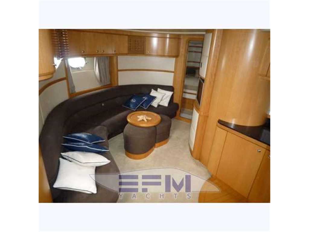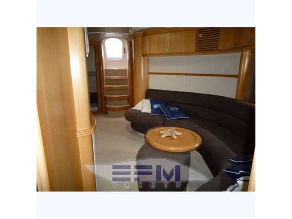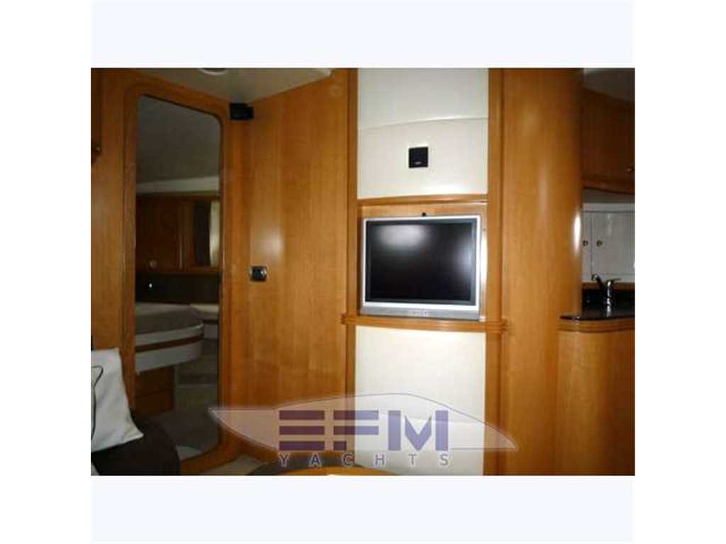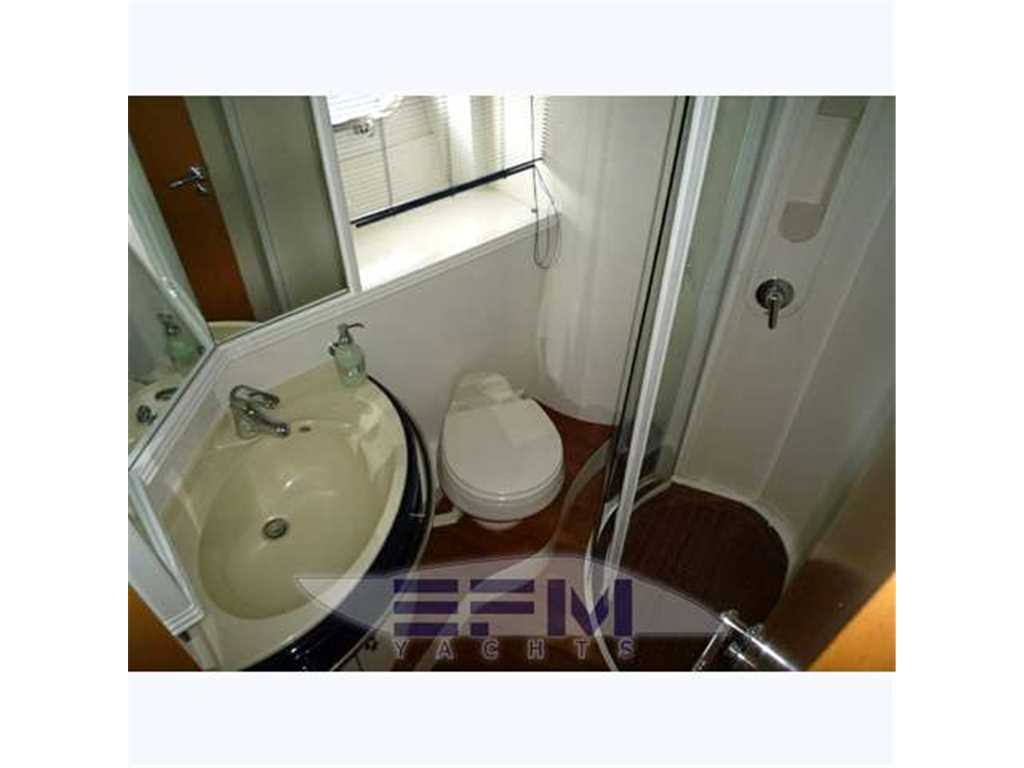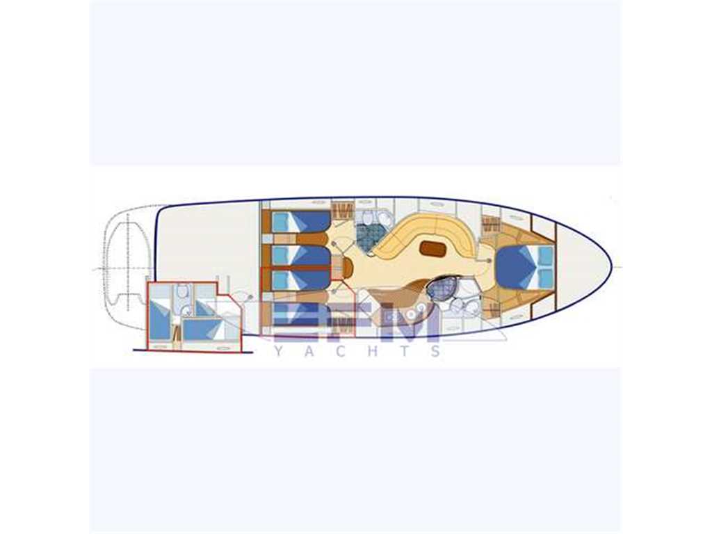 Notas internasCostruzione e strutture: scafo realizzato con resine speciali e tessuti in vetrokevlar. Per le murate, finitura in gelcoat blue navy; linee d'acqua verniciate. Bottazzo in acciaio inox Coperta: camminamenti in vetroresina antisdrucciolo; battagliole, bitte di ormeggio e passacavi in acciaio inox; 2 passauomo in coperta; bimini top con apertura elettrica; roll-bar e parabrezza in vetroresina con trasparenti in vetro temperato Zona di prua: ancora tipo Danforth in acciaio zincato da 40 chilogrammi con passaggio in cubia con piastre in acciaio inox; verricello elettrico da 1.500 watt; 75 metri di catena in acciaio zincato Pozzetto: divaneria a C con tavolo centrale nella parte sinistra del pozzetto; sedile pilota a 2 posti con gavoni; mobile bar con frigo, lavello e grill disposto specularmente verso poppavia; prendisole poppiero con passaggio a dritta per la plancia di poppa Plancetta poppiera: in vetroresina con scaletta bagno manuale; doccia acqua calda e fredda; passerella idraulica e gruetta tender a scomparsa. INTERNI Suddivisione e caratteristiche: a pruavia del grande salone è disposta la cabina armatoriale con bagno privato. Verso poppa vi sono le 2 cabine ospiti e una seconda toilette Posto di pilotaggio: sul lato di dritta del pozzetto, servito da divanetto a 2 posti. Plancia ergonomica con strumentazione motori, radiotelefono VHF, plotter con GPS, ecoscandaglio, bussola, pilota automatico con interfaccia GPS Zona carteggio: sui tavolini in pozzetto e nel salone interno Zona cucina: collocata nella zona mediana dell'imbarcazione, sul lato di dritta. Mobili base e pensili in legno pregiato; piastra cottura; microonde; mobile con frigo/freezer da 270 litri. La qualità e la raffinatezza degli allestimenti si nota a prima vista. Lo spazio è ben sfruttato ed è adeguatamente valorizzato dalla scelta di tonalità chiare in tutte le cabine per ciò che riguarda arredi e rivestimenti. Accessoristica interna di alta gamma Interni moderni ed eleganti in rovere sbiancato e venghe e pavimento in moquette . Ampia e spaziosa dinette posizionata al centro barca, è arredata con divano in pelle + 2 sedute amovibili , tv LCD e impianto Hi-Fi, ed è dotata di una funzionale cucina super attrezzata completa di grande frigo 270 lt ,3 fuochi vetroceramica ,lavello ,lavastoviglie, forno microonde. A prua è posizionata la cabina armatoriale, con bagno e cabina doccia spaziosa come quella di casa. Verso poppa sono situate le due cabine ospiti gemelle: una con i letti in piano e bagno privato con box doccia , e l' altra con i letti alla francese e il bagno con doppio ingresso anche dal salone. POZZETTO • Divano con cuscini • Sedile pilota a due posti con cuscini e gavoni • Cuscini prendisole di poppa • Tavolo fisso con piano sovrapponibile • Mobile bar con frigo a due cassetti,lavello, acqua calda e fredda, grill, pattumiera, presa 220 V c.a. • Doccetta calda e fredda a poppa. • Porta scorrevole ingresso alloggi con finestratura e fermo • Piattaforma di poppa con scaletta da bagno manuale INTERNI • Parquet in essenza zona salone • Moquette in alloggi • Pareti rivestite in essenza e materiale sintetico • Bagni in vtr • Porte in legno • Soffitti in materiale sintetico e legno laccato • Mobili in essenza con finiture interne stesso materiale • Tessuti di arredamento per divani, tende, copriletti, cuscini • Gradini discesa salone interno in moquette SALONE • Divano con rivestimento in tessuto, cuscini asportabili e gavoni • Tavolo centrale regolabile in altezza con piano superiore asportabile • Pouf (2) • Impianto TV LCD e DVD, predisposizione per collegamento I-POD • Tenda • Oblò (1) • Boccaporto con oscurante • Pensile con sportelli e quadro elettrico CUCINA • Mobile base cucina con portelleria, cassetto porta posate, lavelli, rubinetto a scomparsa, piano cottura a 2 fuochi, piano in similmarmo con coperture • Mobile pensile con portelleria, luce su piastre cottura e microonde tipo combi • Mobile con frigo/freezer da 270 lt, 220 V CA • Oblò (1) • Tenda veneziana CABINA ARMATORE • Armadi (2) con appendiabiti, sportello, luci interne e ripiani porta oggetti • Mobile laterale con ripiani bassi • Letto matrimoniale con piano sollevabile, pistoni a gas, due cassetti, vano stivaggio • Materasso a molle, con guanciali, e copriletto • Tende laterali in tessuto con oscurante • Oblò (2) BAGNO ARMATORE • Mobile in legno laccato con specchi e ripiani porta oggetti • WC Vacuum Flush • Box doccia con porta, vani portaoggetti e carabottino in teak verniciato • Calpestio in parquet • Lavello e piano in similmarmo • Accessori in cromo, plexiglas, acciaio inox • Luci 24 V e presa 220 V c.a. • Tenda veneziana • Specchio • Oblò (1) CABINE OSPITI (2) • Letti separati con comodino e cassetto • Contenitore sotto il letto • Materassi a molle (2), e guanciali (2) • Copriletto (2) • Tappezzeria in tessuto • Armadio con appendiabiti, luci interne e cassetto • Tenda oscurante • Cassettiera • Oblò (1) BAGNO OSPITI • Mobile in legno laccato, a specchi, e con ripiani porta oggetti • WC Vacuum Flush • Doccia con porta pieghevole in plexiglas • Piano calpestio con carabottino in teak verniciato • Piano lavello e lavello in similmarmo • Accessori in cromo, plexiglass, acciaio inox • Luci 24 V e presa 220 V c.a. • Tenda veneziana • Specchio • Oblò (1) LOCALE EQUIPAGGIO • Boccaporto in pozzetto per accesso • Letto con sportelleria alla base • Tenda di chiusura per doccia e wc • Materasso e guanciale • Armadio appendiabiti • Tenda • Aria condizionata • WC Vacuum Flush • Accessori bagno • Oblò (1) Notas de la instrumentaciónStrumentazione Raymarine completa: gps plotter cartografico C 120 interfacciato - vhf - ssb - autopilota interfacciato - ecoscandaglio - manette elettroniche - telefono gsm - antenna Tv - antenna Sat tv in dome kvh m5 - lettore cd/dvd - televisore lcd