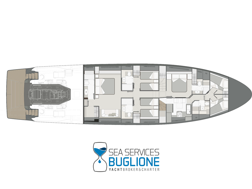 Notas internasLa cabina armatoriale prende forma a centro nave donando massima ampiezza all'ambiente. Le forme disegnate a mano dai falegnami in contrasto con i pellami ed le leghe di prima manifattura donano una sensazione di Lusso sfrenato con eleganza, la sobrietà dei colori, le fantastiche caratteristiche al tatto di ogni accessorio aumentano il desiderio di permanenza a bordo, la presenza di due squarci sul mare cosi panoramici. Il bagno maniacalmente curato non lascia scampo a preoccupazioni per chi è abituato al confort. Cabina vip matrimoniale Cabina ospiti con letti in piano Cabina ospiti con letti in piano Cucina interna Notas de la instrumentaciónDashboard Futuristica con un unico immenso touch screenN°2 Plotter Gps Ecoscandaglio Conta catene Radar Visore notturno Notas de armamentoPasserella idraulcia Hangar tender Hard top Soft Top Verricelli di Manovra Aria Condizionata caldo/freddo Generatore Carica batterie inverter Bimini top a prua Angolo Bar |