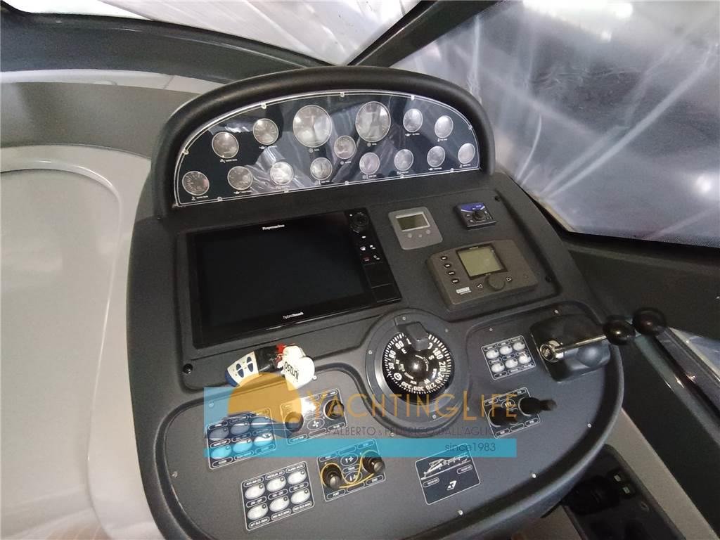 Notas de la instrumentaciónAllarme motore, Ancora (Inox e catena inox 200mt.), Angolo barra, Apertura Vano Motore Elettrica, Autoclave, Autogonfiabile, Batterie, Bussola, Caricabatterie, Colorazione speciale (grigio), Comando motori elettronico, Contametri catena (Quick), Contamiglia, Doccia esterna, Ecoscandaglio, Elica di prua - bow thruster, Flap idraulici, Hard top (Soft top Rev. 2022), Impianto antincendio, Indicatori Flaps, Luci di cortesia (Interne ed esterne), 3 Luci subacquee (Oceanled), Motore ausiliario (Selva 9,9 4t), Passerella (idraulica a scomparsa Rev.2022), Piattaforma, Pilota automatico (Geonav Nauticontrol), Plotter con antenna GPS (Raymarine 14" hybridtouch), Pompa di sentina automatica, Pompa di sentina elettrica, Porta ingresso, Pozzetto Teak (Con comenti grigi nuovi), Presa 220V banchina, Radio VHF (Raymarine), Salpa Ancore Elettrico, Scaletta da bagno, Tavolo pozzetto (con prolunga), Tender (3D alluminio 2,40 hypalon), Tromba