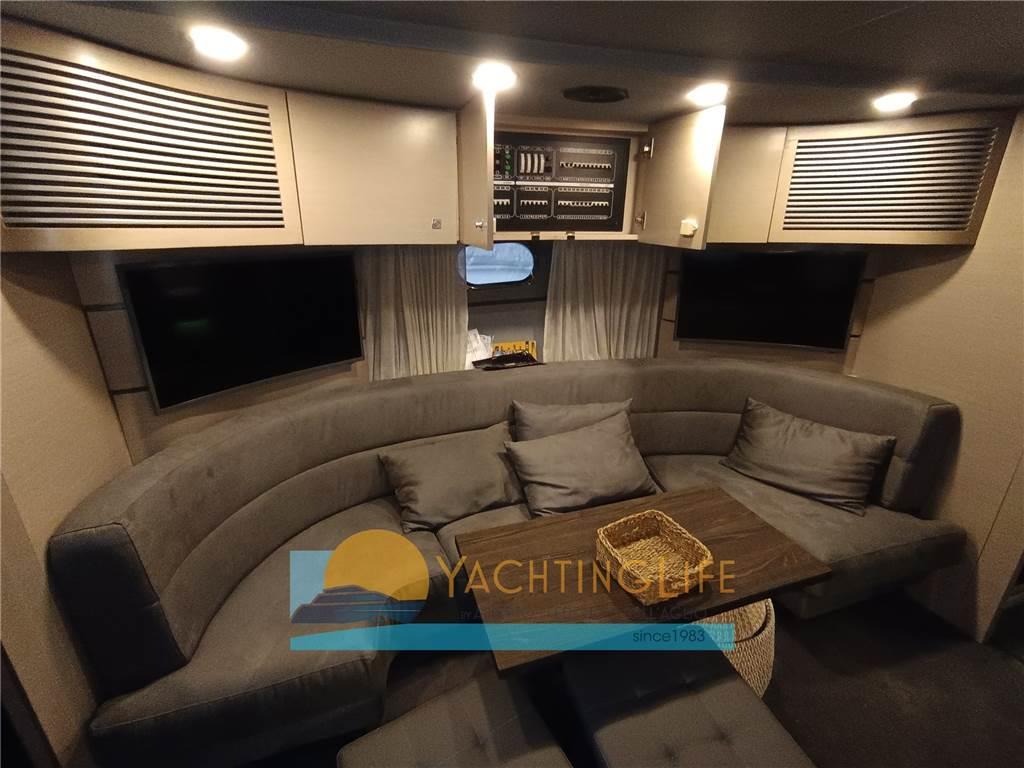 Notas de armamentoAltoparlanti (Subwoofer, casse e tweeter Focal), Antenna Satellitare TV, Aria condizionata, Boiler, Cappottina, Controllo Domotica (Audio e video interno ed esterno separati), Cucina, Cuscineria completa, Cuscineria di poppa (PVC silver 3D), Decoder satellite, Frigorifero esterno, Frigorifero interno, Impianto acque nere, Impianto TV, Inverter, Microonde (Nuovo), Piastra in vetroceramica (Induzione nuova), Prese interne 12v, Prese interne 220v, Stereo (Sdoppiato interno ed esterno con amplificatore), Tendalino, 3 TV, 3 WC marino elettrico