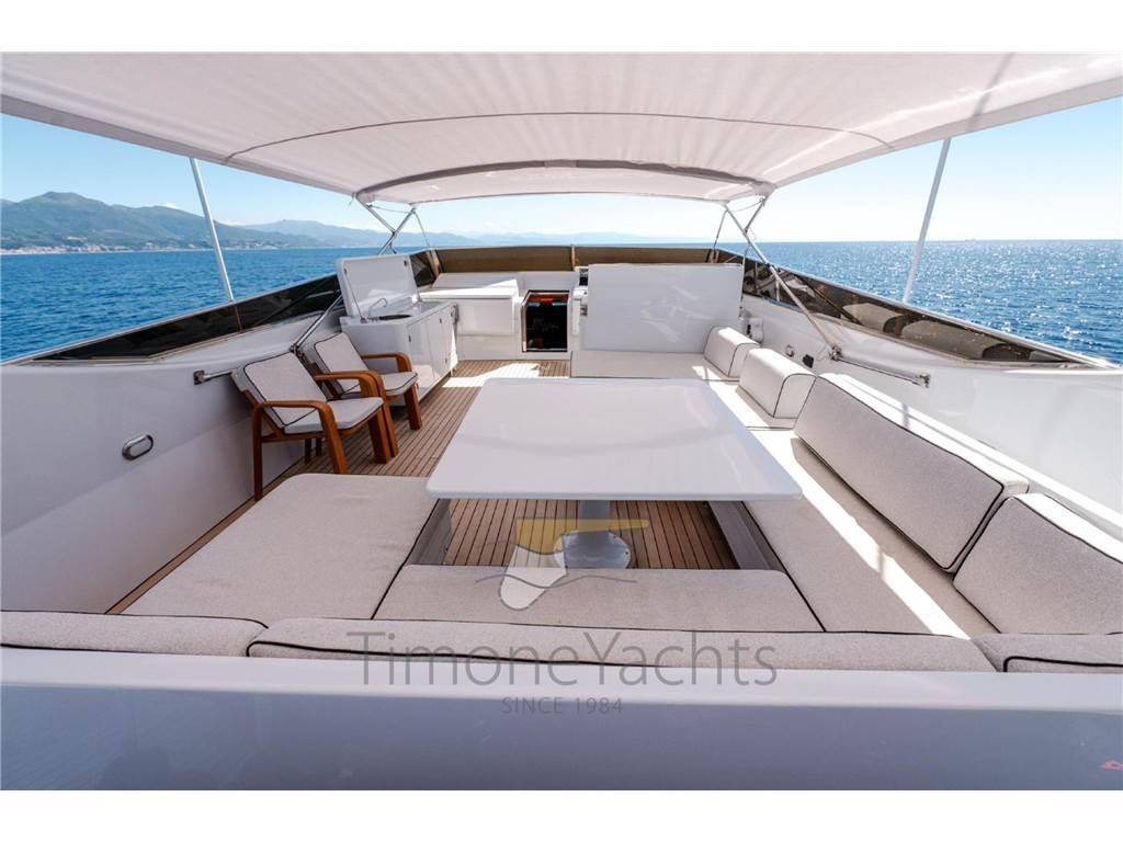 Notas internasNotas de la instrumentaciónAIS, Antenna radar, Camminamenti laterali in teak, Contametri catena, Display, Doccia esterna, Elica di prua - bow thruster, Flap idraulici, Gruette per tender su fly, Impianto antincendio, Indicatori Flaps, Luci di cortesia, Luci di navigazione, Luci subacquee, Passerella, Piattaforma, Pilota automatico, Ponte in teak, Porta ingresso, Porta laterale, Pozzetto Teak, Radar, Radio VHF, Sistema Depurazione acque nere, SSB, Stabilizzatori (CMC MARINE srl type SE 060-120HS ZERO), Stazione vento, 2 Tavolo pozzetto, Tromba, Winch tonneggio di poppaNotas de armamentoAltoparlanti, Antenna Satellitare TV, Aria condizionata, Bimini, Cuscineria completa, Cuscineria di poppa, Cuscineria di prua, Cuscineria fly, Cuscineria Pozzetto, Dissalatore, Forno, Frigorifero esterno, 3 Frigorifero interno, Inverter, Lavastoviglie, Microonde, Piastra elettrica, Radio AM/FM, Riscaldamento, Termovisore, TV |