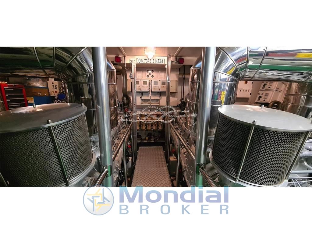 Notas internasAlloggio equipaggio con tre cabine per cinque persone - tre bagni. Notas de la instrumentaciónGPS/Plotter Furuno NavNet - GPS Furuno GP-32 - GPS/Plotter Northstar 6100 - radar Furuno 98 mg - SSB Furuno - AIS Furuno - VHF iCom IC-M604 - ecoscandaglio Furuno FCV-585 - log B&G Hydra 2000 - pilota automatico C-Plat Navpilot V - stazione del vento - girobussola Sperry - bussola.Notas de armamentoGeneratori 2 x 65 kW Kohler - n. 2 dissalatori - aria condizionata doppio ciclo - elica di prua idraulica - pinne stabilizzatrici Koopnautic Holland - convertitore di corrente "Atlas" (380/220/45Kwa) - ampio garage di poppa con portellone idraulico - gruetta sul fly - lavatrice - asciugatrice - terza stazione di comando su fly (lato sinistro) - mobile bar su fly con 2 frigoriferi e grill - antenna TV SAT KVH - TV LCD 60'' in salone - TV LCD in tutte le cabine ospiti, cabine equipaggio e cucina - tender Novurania 4,50 m. con fuoribordo Honda 90 Hp. |