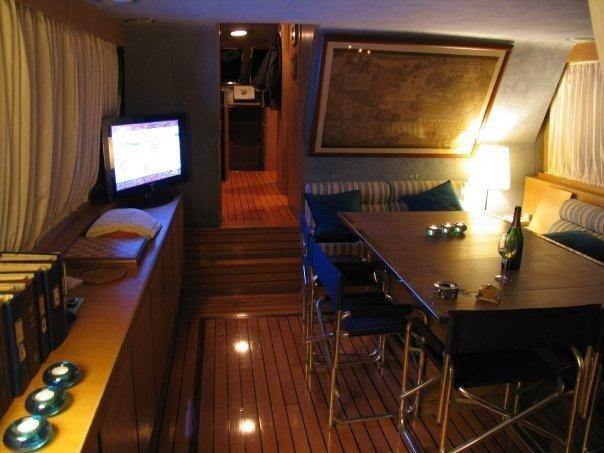 Notas internasTRIPULACIÓN LOCAL EN EL ARCO, CON SERVICIOS INDEPENDIENTES. ÃREA CUBIERTA PRINCIPAL CON LA IZQUIERDA GUÃA DE LADO, CON ACCESO AL PISO INFERIOR, CABAÑAS, COMEDOR ZONA GUÃA DERECHA CONVERTIBLES EN CAMA, ESCALERAS DE ACCESO A LA MOSCA Y LA IZQUIERDA LATERAL DE ACCESO Y EGRESO. CUINA DERECHA RECÃMARAS CON ACCESO DESDE EL EXTERIOR Y PUERTA CORREDERA QUE SEPARA DE LA GUÃA. GRAN COMEDOR CON ASIENTOS EN LA DERECHA, LA IZQUIERDA LADO CON MÓVILES PARA LA LONGITUD COMPLETA DE LA PUERTA, COMEDOR QUE DIVIDE ESTE ESPACIO DE LA GUÃA. Notas de la instrumentaciónPROFUNDIDAD SOUNDER AUTOHELM, GPS, FURUNO RADAR GEONAV ELITE11, piloto SSB, VHF SKANTI PRT 6000 SIRIUS LABES VI/60, NAUTIRADAR AP 3002, BRÚJULAS, FLAPS.Notas de armamentoHÉLICE de proa, hidraulica, nadar escalera de acero inoxidable y madera de teca, Molinete con ancla y cadena 12 mm DANFORTH, n º 2 montaje de cabrestante eléctrico, N ° 2 generadores: 1X3KW norte, 1X12KW, rectificadores/cargadores de nuevo, frÃo/caliente aire acondicionado, calderas, enchufe 220V, RACORD filtros, escaleras, ROLL, volar volar toldo, cojines al aire libre, TV y estéreo.COCINA totalmente equipada con frigorÃfico y congelador, estufa de 3 quemadores, GAS + eléctrico, fregadero 1 acero, nevera EXTRA en el comedor. |