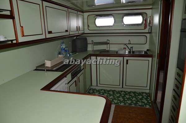 Flybridge con estilo. 18 personas transportables. 3 cabinas + 1 cabina de la tripulación. Registrarse por primera vez en Italia en 2007. 220V 2 generadores. |