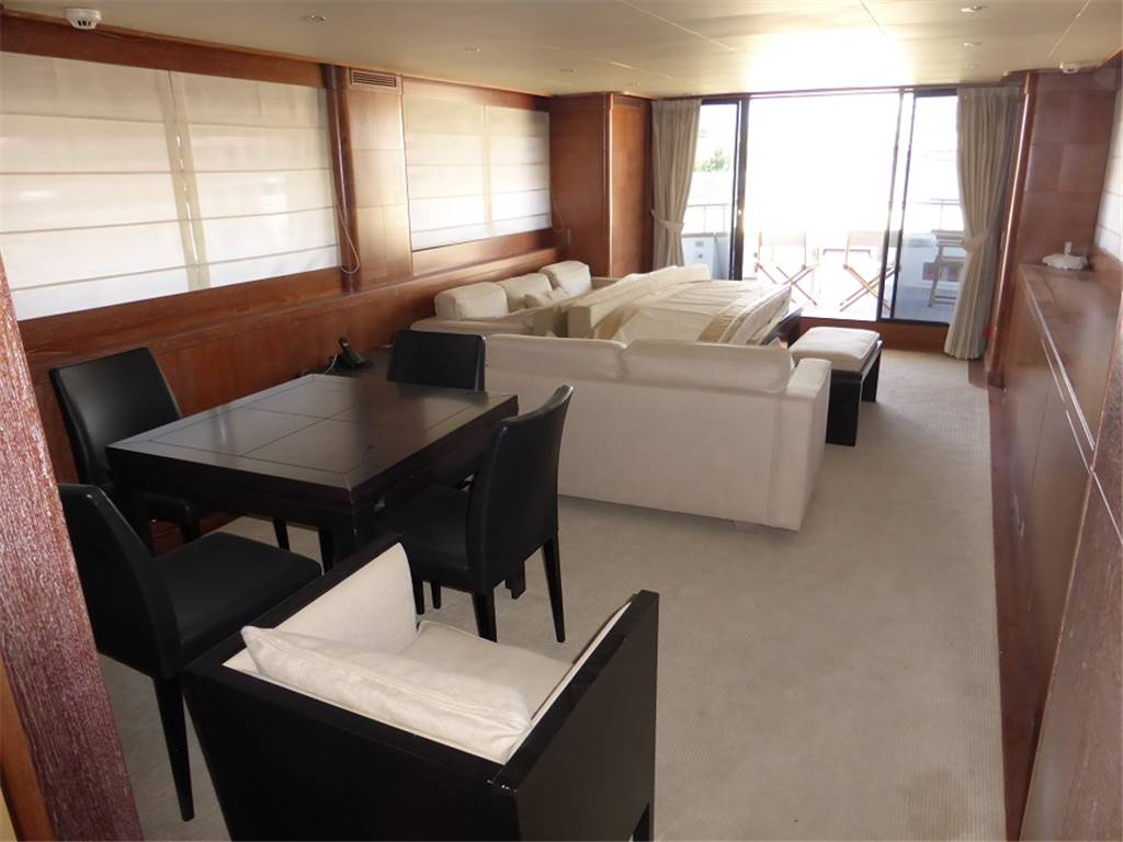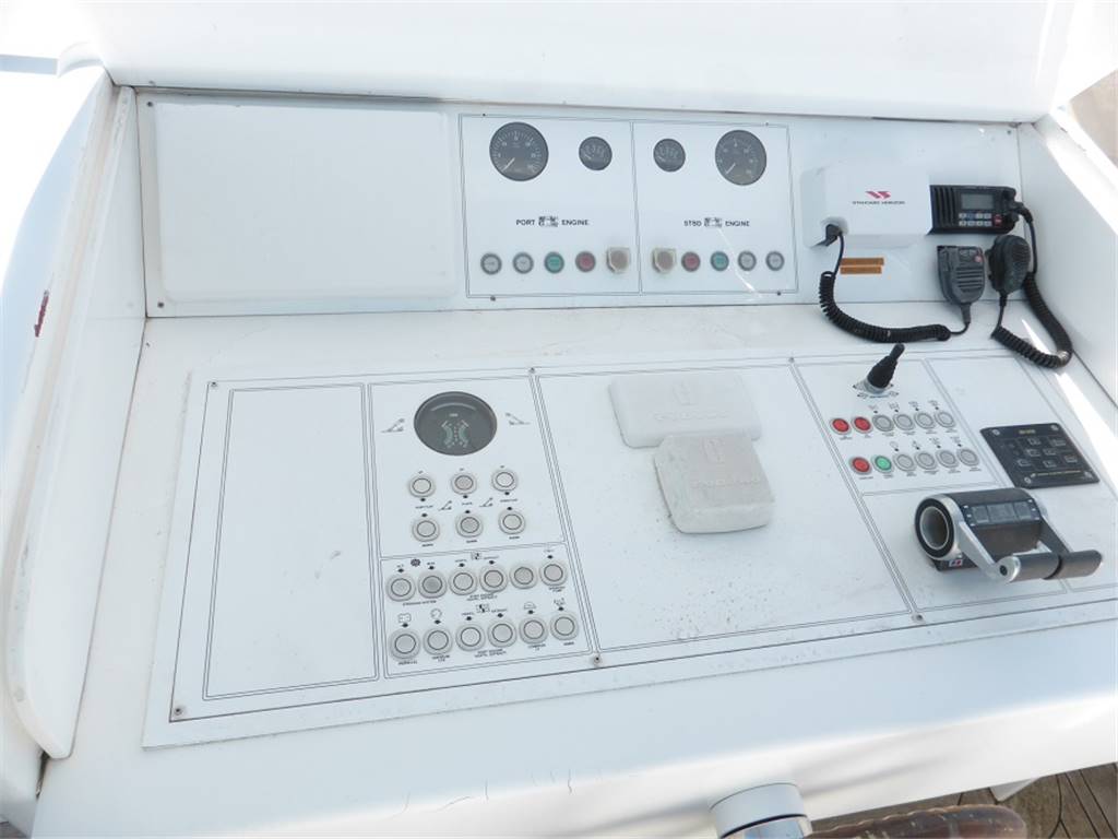 Notas internasDisposizione degli interni 4 cabine, 5 bagni, 2 cabine marinaio doppie Cabina armatoriale a centro barca a tutto baglio con bagno privato Cabina vip a prua con letto matrimoniale e bagno privato Cabina ospiti con letto matrimoniale e bagno privato 2° cabina ospiti con letti singoli in piano e bagno privato Cucina separata completa Zona pranzo con tavolo e sedie Zona TV con divano Notas de la instrumentaciónStrumentazione GPS Eco Vhf Radar Autopilota, tutto ripetuto sul fly Elica di prua Passerella idraulica Boiler Autoclave Tonneggi di poppa Verricello elettrico Aria condizionata Generatore 26 Northerlight Carica batterie Antenna satellitare Gru sul flyNotas de armamentoAllestimento tecnico e di coperta Allarme motore, Allarme sentina, Ancora, Autoclave, Batterie, Doppia timoneria, Faro orientabile, Flap idraulici, Gruette per tender su fly, Impianto antincendio, Indicatori Flaps, Luci di cortesia, Piattaforma, Pompa di sentina automatica, Porta ingresso, Porta laterale, Presa 220V banchina, Rollbar, Tavolo pozzetto, Tromba, 2 Winch tonneggio di poppa. Dotazioni domestiche di bordo Boiler, Cucina, Impianto acque nere, Prese interne 12v, Prese interne 220v, Telecamera. Intrattenimento Altoparlanti, Stereo. Cucina ed elettrodomestici Asciugatrice, Frigorifero esterno, ICE Maker, Piastra in vetroceramica. Tappezzerie Cuscineria completa, Cuscineria di poppa, Cuscineria di prua, Cuscineria fly, Tendalino Strumentazione elettronica di navigazione Angolo barra, Antenna radar, 2 Bussola, Comando motori elettronico, Display, Plotter con antenna GPS, 2 Radio VHF. Elettronici VHF Plotter Altoparlanti pozzetto Lettore di DVD TV - Satellitare Pilota automatico Radio Bussola Centro di Navigazione GPS Ecoscandaglio Lettore di CD Log - Contamiglia Equipaggiamenti interni Lavastoviglie Caricabatterie Pompa di sentina elettrica Lavatrice Acqua calda Microonde WC elettrico Forno Frigorifero Aria condizionata Elica di prua Congelatore Equipaggiamenti Elettrici Generatore - 26 Kw Northerlight Presa corrente a terra Impianto elettrico: 220V Dotazioni Esterne Passerella idraulica Cuscineria pozzetto Doccia di pozzetto Pozzetto teck Scaletta di bagno Salpa ancore elettrico Elettronici VHF Plotter Altoparlanti pozzetto Lettore di DVD TV - Satellitare Pilota automatico Radio Bussola Centro di Navigazione GPS Ecoscandaglio Lettore di CD Log - Contamiglia Equipaggiamenti interni Lavastoviglie Caricabatterie Pompa di sentina elettrica Lavatrice Acqua calda Microonde WC elettrico Forno Frigorifero Aria condizionata Elica di prua Congelatore Equipaggiamenti Elettrici Generatore - 26 Kw Northerlight Presa corrente a terra Impianto elettrico: 220V Dotazioni Esterne Passerella idraulica Cuscineria pozzetto Doccia di pozzetto Pozzetto teck Scaletta di bagno Salpa ancore elettrico |