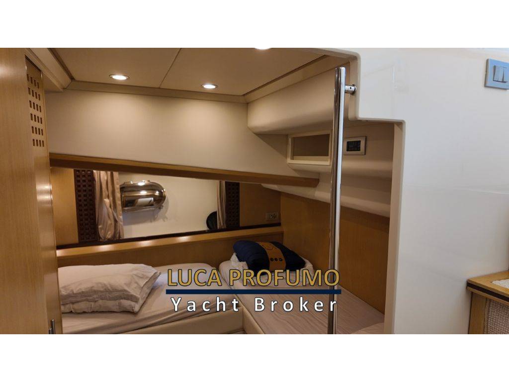 Lavori 2020: Sostituzione di materassi, tendine nuove in tutte le cabine, tendalini di poppa, coperture del parabrezza e finestre laterali, copri materassi, copri letti e lenzuola; installazione rubinetti nuovi in tutti i bagni; zanzariere per oblò; installazione impianto stereo FUSION MS-RA770 Stereo 4 Zone serie Apollo; installazione altoparlanti FM-F77RW da 7.7” griglia tonda bianca Lavori 2021: – sbarco generatore con revisione generale officina autorizzata Mase; – Aggiornamento elettronica: sostituzione navigatore con installazione AXIOM+ 12 Display Multifunzione 12.1? a colori WiFi e Touch; – Revisione e verniciatura generale compreso alloggio della scaletta Officina Autorizzata Besenzoni; – Revisione e verniciatura generale compreso alloggio della passerella Officina Autorizzata Besenzoni; sostituzione sensore in-out automatico passerella; – Rifacimento con legno massello scalini interni, esterni e parte centrale cuscineria di poppa; – Sostituzione Fuochi induzione pozzetto e dinette Lavori 2022: – Sostituzione cuscineria prendisole di prua; – Sostituzione cuscineria prendisole di poppa; – Sostituzione antenna radar Quantum Q24C Radar 18; – Sostituzione display radar AXIOM+ 12 Display Multifunzione 12.1? a colori WiFi e Touch; – Sostituzione delle 3 piastre fuori scafo frigoriferi; sostituzione di tutti i raccordi evaporatori e compressori; sostituzione dei 2 compressori; – Sostituzione boiler; – Sostituzione forno microonde; – Sostituzione pannelli coibentazione sala macchine; – Sverniciatura totale della carena Lavori 2023: – Revisione generale flap eseguita direttamente da Cantieri di Sarnico; – Sostituzione prese a mare – Rinnovo certificato di sicurezza – Iscrizione Registro Elettronico Lavori 2024 – Sostituzione pacco batterie – Sostituzione led di poppa – Sostituzione tappi tendalino – Sostituzione pulsanti di accensione - Sostituzione motore centralina passerella (nuovo) - aggiornamento pilota automatico con sostituzione display i70 - display i70 multipage e aggiornamenti cablaggi raynet Lavori 2025 - Revisione scambiatori motori olio e liquido refrigerante (gennaio). - Tagliando motori e generatore, carenaggio Maggio '25 - Revisione zattera Eurovinil |