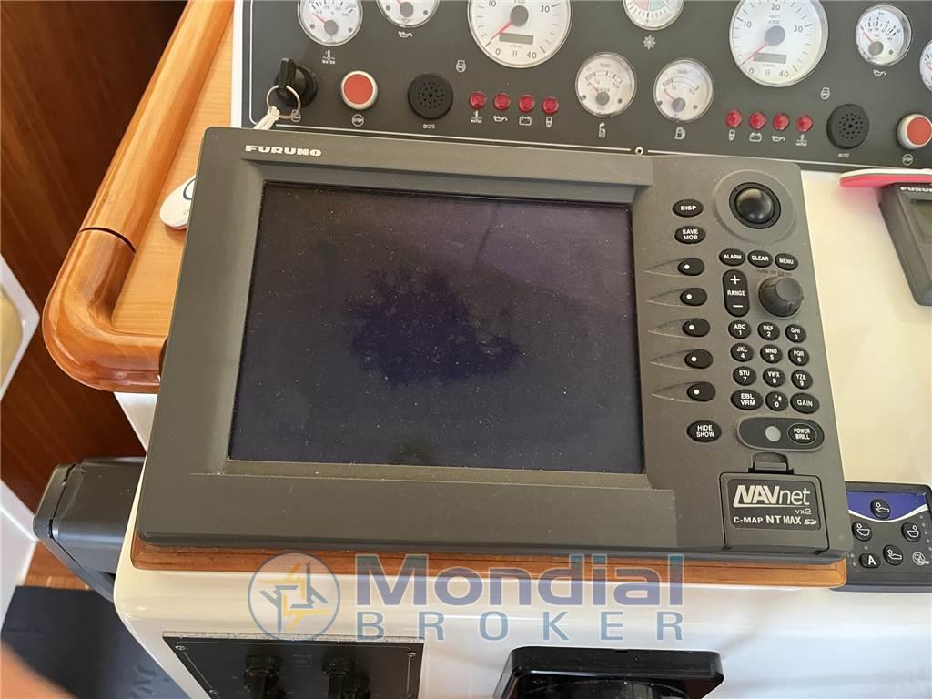 Notas internasNotas de la instrumentaciónAncora, Autoclave, Batterie, Caricabatterie, Colorazione speciale, Doccia esterna, Flap idraulici, GPS, Passerella (IDRAULICA), Piattaforma, Pilota automatico, Plotter, Porta ingresso, Pozzetto Teak, Presa 220V banchina, Radio VHF, Scaletta da bagnoNotas de armamentoBoiler, Cucina, Cuscineria completa, Frigorifero interno, Microonde, Piastra in vetroceramica, Prese interne 220v, WC marino elettrico, TUTTA ELETTRONICA FURUNO |