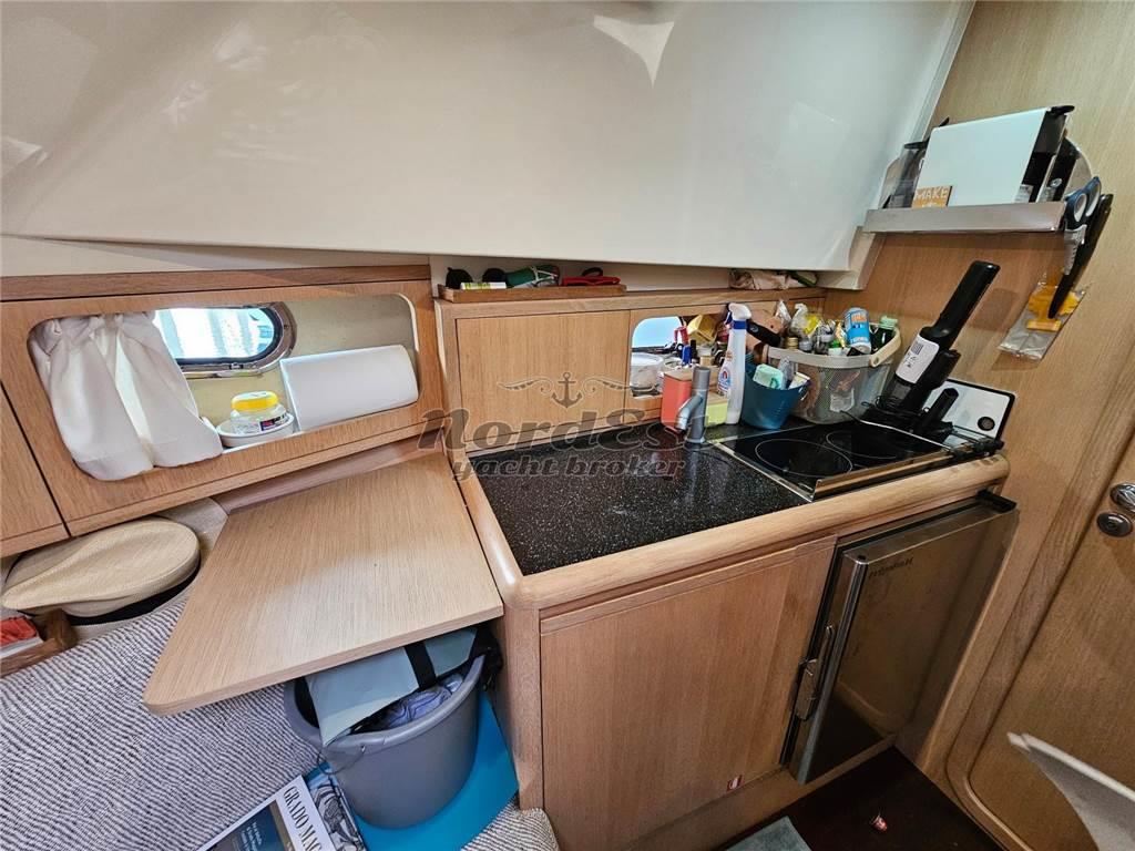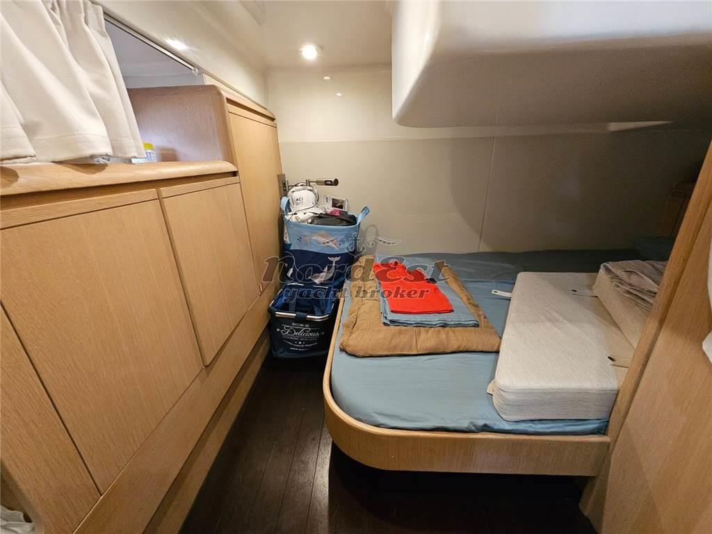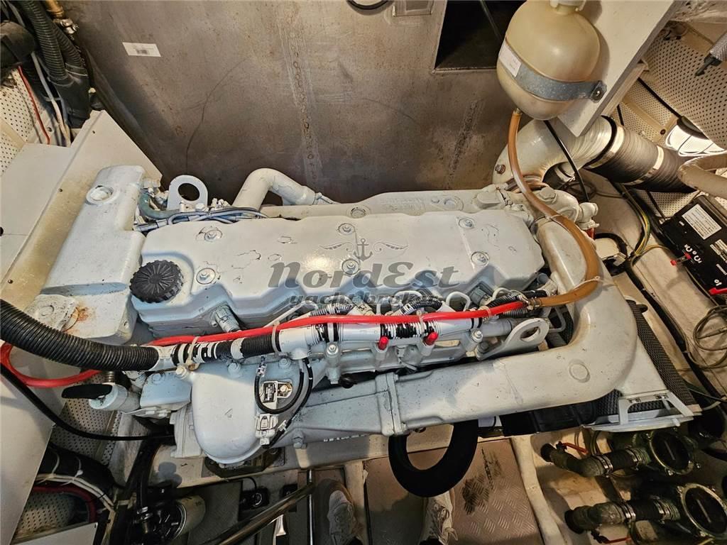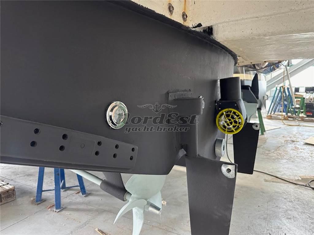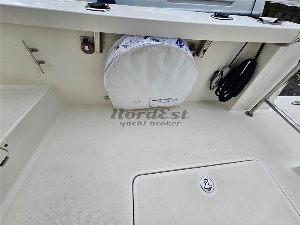 Passerella: Idraulica Winch di tonneggio: a prua Manette elettroniche Angolo di barra Colore scafo: Carta da zucchero Telo copriscafo |
