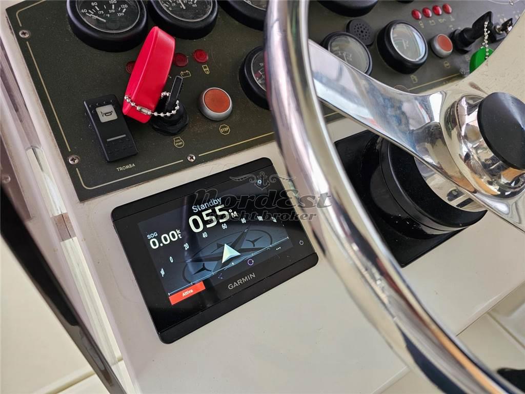 Notas internasInterni: DESCRIZIONE INTERNI - n. 2 cabine - posti letto 2+2 - Interni in legno chiaro - n. 1 servizio ----- Impianto stereo Impianto TV Tv Bagni: 1 Cabine: 2 Posti letto: 2+2 Cucina Frigorifero Piano Cottura: 1 Notas de la instrumentacióntermocamera, antenna satellitare stabilizzata, Luci subacquee 2022, n.2 autoradio interno ed esterno separatiPilota automatico: Garmin Ecoscandaglio: Garmin GPS: Garmin Plancetta: Presente Radar: Garmin Telecamere Vhf: Garmin Notas de armamentoDESCRIZIONE IMPIANTISTICA Secondo frigo Elica poppa e prua Caricabatterie a tre vie Elica prua con batteria dedicata Flaps intruder n.4 prese elettriche per mulinelli pesca Angolo di barra elettronico multifunzione 2023 n.2 schermi garmin multifunzione 12 pollici Faro orientabile da pannello e anche con telecomando Batterie N 3 da 200 AH 2022 Batteria dedicata elica prua Batteria dedicata gruppo elettrogeno N.2 autoclave uno per acqua dolce cucina doccia e w.c. elettrico e uno acqua salata per lavaggio ponte e catena Salpaancora con comando a prua con contametri e comando wireless in plancia con contametri ----- Impianto antincendio Copertura pozzetto Cuscineria prendisole Doccia esterna Elica di manovra a poppa: Presente Elica di manovra a prua: Presente Faro orientabile Flaps Frigorifero esterno Luci di cortesia |