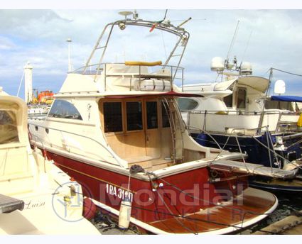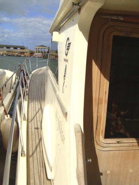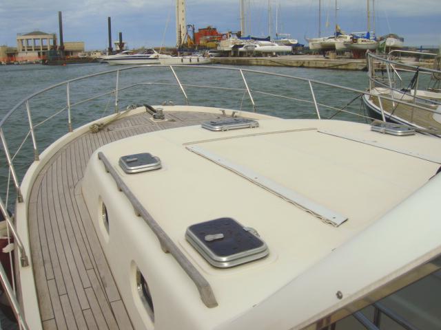 Notas de armamentopista, cabina/plataforma/lado teca pasarelas, luces de popa para pesca, deformación cabrestante en pisos de madera, popa, Sofás de cuero, persianas de interiores completas, aire acondicionado (frÃo/calor), coprifinestrature, arco, piloto automático, gps, vhf, aletas, reflector, generador dinámico, estufa de tres quemadores de vitrocerámica, cortinas, doble nevera en el pasillo, sistema de sonido de cd, salón manual tabla arriba/abajo, refrigerador sobre la marcha.