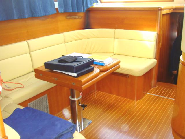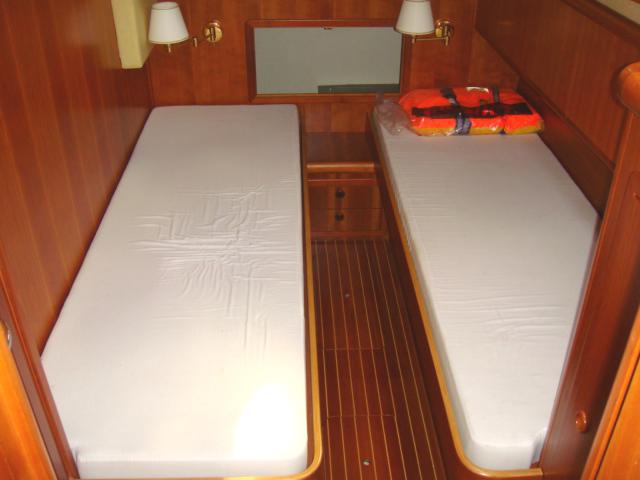 Notas internasInterior clásico pero no pesado, marinera gusto! Debajo de la cubierta, bajó las escaleras, cocina totalmente equipada (estribor), habitación con dos camas en el lado izquierdo. baño dÃa y dedicada a la cabina de invitados. La cabina delantera con baño en suite. Todas las habitaciones tienen aire acondicionado. La cocina tiene el clima desde el pasillo. Notas de la instrumentaciónBrújula, GPS, piloto automático, VHF, generador Mase.Notas de armamentoCalzada, plataforma de baño de teca, escalera de baño, hélice de proa/proa, teca passavanti cabina y arco, cocina de bañera teca (fregadero + grill), interior de cuero, piso de la teca, compás, GPS, piloto automático, VHF, cocina de Mase generador, TV, lavantidi y eléctrica caliente placa, microondas, nevera, baño con ducha. |