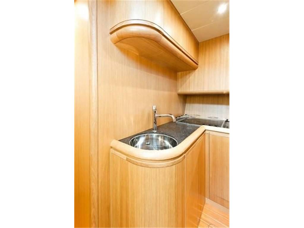 Notas internasCategoria di progetto: CE A. Gelcoat neopentilico, scafo colore bianco. Scafo e coperta in PRFV stratificata a mano con tessuti biassiali. Prime laminazioni di carena con resina vinilestere. Coperta e murate in sandwich strutturale e atermico. Longheroni e madieri di rinforzo con tessuti biassiali e unidirezionali. COPERTA Antenna GPS. Luci di navigazione. Tromba. Crocetta in teak. Due tergicristalli a pantografo con impianto lavaggio vetri. Plancetta di poppa in VTR ricoperta in teak. Pozzetto e gradini passavanti ricoperti in teak. Battagliola completa in acciaio inox Ø35mm. Bottazzo in acciaio inox. Tientibene inox sulla tuga ed a fianco della zona prendisole. Scaletta per risalita bagno in acciaio e gradini in teak. Nove oblò e tre passauomo. Quattro bitte inox con passacavi inox a prua e a poppa. Due bitte di mezza nave. Prese aria motori con modanature in acciaio. Gavone a prua con alzapagliolo. Tappi imbarco acqua e gasolio con chiusure di sicurezza. Presa stagna 230Vca da banchina. POZZETTO Tirante di emergenza impianto antincendio fisso in sala macchine. Paratia pozzetto inox con vetro temprato specchiato. Due tientibene inox di accesso al passavanti. Portina di accesso al pozzetto in VTR con chiusura acciaio inox. Portello di accesso alla sala macchine con alzapaglioli e cerniere inox e pistoni a gas. Gavoni laterali con chiusure inox. Doccetta con miscelatore acqua C/F. Luci di illuminazione pozzetto su tuga e luci di cortesia in pozzetto. SALONE Mobili ed arredi in legno laminato e massello. Ripiani portaoggetti. Illuminazione con faretti alogeni a soffitto. Parabrezza, finestrature laterali apribili in vetro temperato. Paglioli in legno. Prese di corrente 230Vca. Divani in tessuto. CUCINA Mobili ed arredi in legno laminato e massello. Cassettiera. Lavello con miscelatore acqua C/F. Frigorifero da 130 litri. Piano di cottura elettrico in vetroceramica a quattro piastre. Piano di lavoro antigraffio. Pattumiera. Paglioli in legno. Illuminazione con faretti alogeni sul piano di lavoro. Presa di corrente 230Vca. CORRIDOIO Paratie in legno laminato e massello. Paglioli in legno. Illuminazione con faretti alogeni a soffitto. Porte di accesso alla cabina ospiti, al bagno ospiti ed alla cabina armatore con fermaporte magnetico. Soffitto con rivestimento in similpelle. Scala di accesso alla dinette. CABINA ARMATORE Mobili ed arredi in legno laminato e massello. Letto matrimoniale con cassettiera. Ripiani portaoggetti. Armadi con appendiabiti e cassettiera. Pensili laterali con apertura basculante. Specchio sagomato su testaletto. Gavoni sotto il letto. Paglioli in moquette. Illuminazione con faretti alogeni a soffitto. Luci di lettura in testaletto con braccetto snodabile. Presa di corrente 230Vca. Due oblò. Passauomo di accesso in coperta. Gavone sotto il pagliolato. Soffitto con rivestimento in similpelle. Appendiabiti a parete. Materasso e cuscini. Porta di accesso al bagno armatore. BAGNO ARMATORE Mobili ed arredi in legno laminato e massello. Armadietti e ripiani. Piano lavabo in legno verniciato con lavabo in ceramica e miscelatore acqua C/F. Portasciugamani. Specchio. WC marino elettrico in ceramica. Bidet. Portascopino. Box doccia con rivestimento in mosaico e porta in plexiglass. Doccia a colonna con saliscendi e miscelatore acqua C/F. Carabottino doccia in teak. Illuminazione con faretti alogeni a soffitto. Prese di corrente 230Vca. Oblò e osteriggio. Soffitto con rivestimento in similpelle. Appendiabiti a parete. Porta di accesso alla cabina. CABINA OSPITI Mobili ed arredi in legno laminato e massello. Letto matrimoniale. Comodino con cassetti. Ripiani portaoggetti. Armadio con appendiabiti. Specchio. Gavoni sotto il letto. Paglioli in moquette. Illuminazione con faretti alogeni a soffitto. Luci di lettura in testaletto con braccetto snodabile. Presa di corrente 230Vca. Tre oblò. Gavone sotto il pagliolato. Soffitto con rivestimento in similpelle. Appendiabiti a parete. Materasso e cuscini. Porte di accesso al corridoio ed al bagno ospiti. BAGNO OSPITI Mobili ed arredi in legno laminato e massello. Armadietti e ripiani. Piano lavabo in legno verniciato con lavabo in ceramica e miscelatore acqua C/F. Portasciugamani. Specchio. WC marino elettrico in ceramica con bidet incorporato. Portascopino. Box doccia con rivestimento in mosaico e porta in plexiglass. Doccia a colonna con saliscendi e miscelatore acqua C/F. Carabottino in teak. Illuminazione con faretti alogeni a soffitto. Prese di corrente 230Vca. Oblò e osteriggio. Soffitto con rivestimento in similpelle. Appendiabiti a parete. Porte di accesso al corridoio ed alla cabina ospiti. Notas de la instrumentaciónPLANCIA DI COMANDOBussola. Ruota del timone con timoneria idraulica. Monoleve comandi motori. Cruscotto con quadro comandi per flaps, tergicristalli, lavavetri, verricello ancora, tromba, parallelo gruppi batterie, luci strumenti. Gps. Ecoscandaglio. Strumentazione controllo motori e allarmi: contagiri, contaore, indicatore temperatura acqua e allarme visivo, indicatore pressione olio e allarme visivo, allarme visivo mancanza di carica dell'alternatore, allarme visivo e sonoro presenza acqua nei prefiltri gasolio, indicatori livello serbatoi gasolio e acqua dolce, chiavi di avviamento e pulsanti di arresto motori. Presa accendisigari. Quadro elettrico generale per le utenze a 12Vcc e 230Vca. Quadro sinottico con spie luminose per luci di navigazione e pompe. Poltrona guida con seduta ribaltabile per guida in piedi. SISTEMA DI PROPULSIONE E DI GOVERNO Motori FPT N60 ENT M40/400hp. Invertitori marini ZF 85 IV con comando elettroidraulico. Assi elica in inox Aisi 630 Ø 50mm. Tenute asse elica VOLVO senza manutenzione. Eliche in bronzo a quattro pale. Timoneria idraulica. Timoni in bronzo. Correttori di assetto (flaps). IMPIANTO CARBURANTE Due serbatoi gasolio in acciaio inox per complessivi 1.600 litri (+/- 5%). Bocchette d'imbarco sui passavanti. Strumenti di controllo livelli serbatoi in plancia 