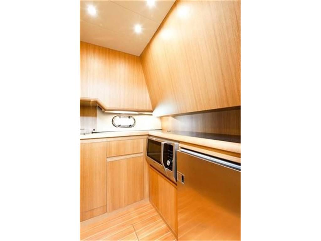 Si propone nella interessante configurazione con flying brigde di impostazione fisherman. Come tutti i modelli del cantiere, è stata progettata e viene costruita per navigare in alto mare e in ogni situazione. La perfetta esecuzione del manufatto è svelata dalle superfici a specchio dei fianchi. Essenze ricercate e masselli lavorati con cura artigianale rivelano il pregio e il valore del modello. Il layout interno prevede alcune variazioni sul tema: è disponibile una compartimentazione con due o tre cabine; la cucina può essere sistemata sul ponte superiore o su quello inferiore; sotto al salone si può organizzare una grande cambusa con congelatore o una cabina per la hostess. Ha un’ottima stabilità e prestazioni di rilievo. |