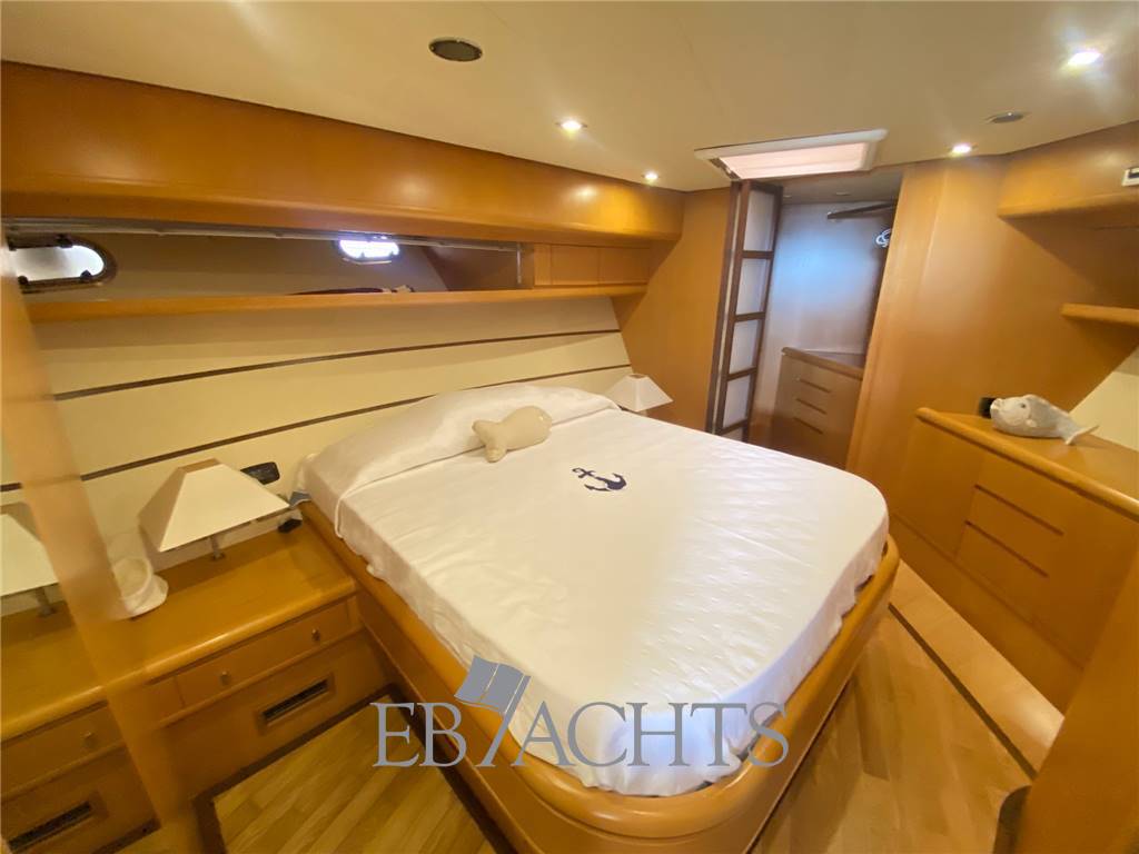 Notas internasSPAZI ESTERNI - Ampio prendisole di prua, completo di cuscineria. - Flybridge attrezzato con divano a “U”, tavolo trasformabile prendisole, plancia di comando con divanetti laterali, mobile con lavandino e frigorifero, casse audio indipendenti e tendalini richiudibili per ombreggiare tutta l’area. - Pozzetto spazioso, capace di accogliere fino a 10 persone sedute a tavola, dotato di divano poltroncine. SPAZI INTERNI - Dinette accogliente con ampio divano a “L”, coffee table, TV e mobile con frigorifero. - Cucina completamente attrezzata, situata nel lower deck. - Zona pranzo rialzata con tavolo e divani. - Plancia di comando con accesso laterale attraverso una porta sulla destra, ideale per agevolare le manovre e l’uscita durante la navigazione. - Cabina armatoriale a prua, dotata di bagno en-suite e cabina armadio. - Cabina VIP con letto matrimoniale e bagno en-suite. - Cabina ospiti con letti singoli e bagno privato. Quest’ultimo funge anche da bagno day tramite un doppio ingresso. AREA CREW - Cabina interna, accessibile dalla cucina, predisposta per wc e doccia. - Cabina a poppa, attualmente non allestita e utilizzata come zona di stivaggio. Notas de la instrumentaciónN. 2 PlotterVHF Autopilota Raymarine Decoder TV SAT Antenna Satellitare Doppia stazione di comando in dinette e sul fly Elica di poppa Elica di Prua Notas de armamentoAria condizionata ClimmaDissalatore 60 l/h Generatore Köhler 16 Kw (600 ore circa) Cucina attrezza con 4 fuochi in vetroceramica Frigorifero in cucina Lavastoviglie Bagno cabina twin con doppio ingresso Stereo indipendente sul fly con 2 casse N. 2 Tendalini sul fly Mobile sul fly con lavandino e frigorifero Teak in pozzetto Teak camminamenti laterali e prua Teak su plancetta di poppa Porta laterale vicino alla plancia comando Cabina armatoriale a prua con bagno en-suite e cabina armadio Scaffale in cucina modificato per stivaggio vini Cuscineria completa sul fly Tavolo regolabile con divano e poltrone in pozzetto Cabina marinaio interna, con predisposizione servizi Cabina marinaio a poppa con servizi |