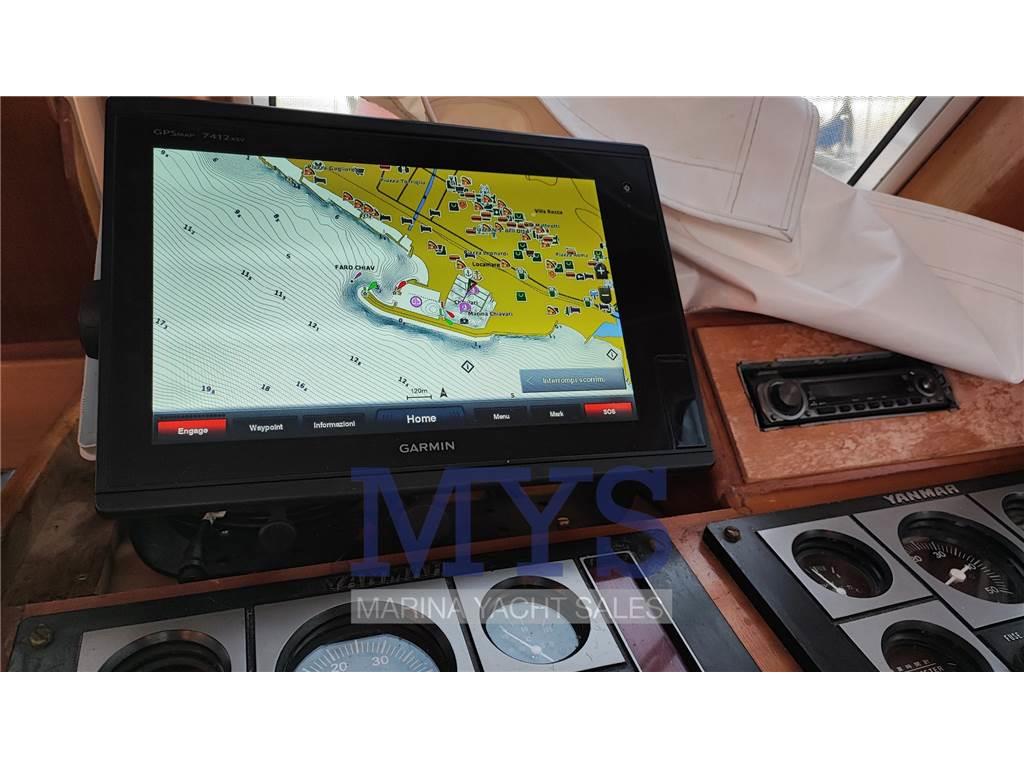 Notas internas1 Cabina a prua con letto matrimoniale con bagno a scomparsa 1 Dinette trasformabile con 2 letti sovrapposti, tavolo da pranzo, con fornello e 1 frigorifero interno Notas de la instrumentaciónAngolo barraAntenna radar Foruno Bussola Contamiglia Ecoscandaglio Foruno 505 + Garmin 7412XSV Flaps idraulici GPS Garmin GPSMAP 7412XSV Pilota automatico Garmin G20AL Radar Foruno Radio VHF Batterie 2x120Ah per servizi + 2x120Ah per motore Caricabatterie Luci di cortesia Presa 220V da banchina Salpa Ancora manuale Prese interne 12v Prese interne 220v Altoparlanti Radio AM/FM Stereo Frigorifero interno Autoclave Passerella in Teak Notas de armamentoAncora Bruce + 40 mt di cima +10 mt di catenaRollbar sul Fly Copripozzetto + tende laterali Cuscineria completa Cuscineria fly Teli copri finestra Telo copriconsolle Tendalino in acciaio Tavolo pozzetto Doccia esterna Piattaforma Scaletta da bagno in acciaio e Teak Salpa palamito elettrico Salpa palamito idraulico da rimontare 2021 completo restyling della carena (con documentazione fotografica di tutto il procedimento). |
