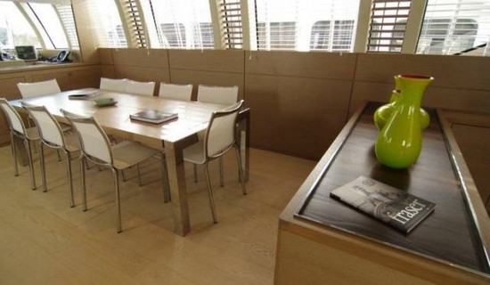 Notas internasConstructor CNT Cantiere del Tigullio + Año de construcción 2012 Longitud 34,30 m. 112 ' 06 "(con bauprés) Anchura 8,20 m/26 ' 11 " Hundimiento 3,80 m/12 ' 6 "(por confirmar) Desplazamiento máximo. 195 Toneladas. (por confirmar) Sistema de West material de casco de madera compuesta Ãrboles de aluminio materiales Distribuidor de arte de árboles Spar Cabinas dobles alojamiento 4 + cabina 12 4 cabinas de equipo Clase RINA-carta, de corto alcance Principal: Morori s/y "Loop" HOMBRE D 2866 LXE 40 tipo; Instalado dos 294 KW (400 caballos de fuerza) a 2100 RPM. Desplazamiento total 11,9 l; 128 mm de diámetro; 155 mm de carrera; 6 cilindros en lÃnea. Cajas de cambio ZF tipo 325 W con relación de reducción de 3.958: 1 y poder despegar PTO. Con propulsión de hélice tipo modelo MAX-PROP Classic 160 a tres palas, diámetro 1000 mm s/y "Loop II" Tipo CATERPILLAR C12 dedos; Instalado dos de 339 KW (460 CV) a 2100 RPM. Desplazamiento total 11,946 l; 130 mm de diámetro; 150 mm de carrera; 6 cilindros en lÃnea; Cajas de cambio ZF tipo 325 W con relación de reducción de 3.958: 1 y poder despegar PTO. Con propulsión de hélice tipo modelo MAX-PROP Classic 160 a tres palas, diámetro 1000 mm Generadores: Tipo EFOZD de KOHLER; m instalada de dos grupos de 40 KW; 380 V; 50 Hz; Equipo eléctrico: Cuadro principal – VARESE pinturas dividido en seis sectores Varios debilita a 220 V AC/24 V DC – VARESE QUADRI Voltajes: 380 V-para los consumidores en la sala de máquinas (bombas) 220 V-para todos los servicios a bordo (una normal y esperado Guarde siempre un generador de corriente). 24 V-Dos conjuntos de baterÃas (400 A/h) para el arranque de los motores principales Dos conjuntos de baterÃas (200 A/h) para iniciar grupos electrógenos Un juego de baterÃas (2000 A/h) para servicios Un juego de baterÃas (400 A/h) para luces de emergencia Un juego de baterÃas (400 A/h) para las capacidades de navegación Cargador de baterÃa tipo de Victron Energy:-uno de una baterÃa de arranque 40 MP -uno de 30 a la baterÃa de arranque GGEE -uno de 240 a baterÃa de servicios-dos de 60 a navegación de baterÃa y el instrumento de luces de emergencia Tipo de inversor de Victron Energy:-3 KW Extrae del suelo: un 400 V y 50 HZ, completo de transformadores de aislamiento de 20 KW. Notas de la instrumentaciónAire acondicionado:Aire acondicionado tipo VECO CLIMMA CWS 2163s RC 3/400/50 de 216.000 BTU/h(espacio de 400 m3) con fan coils en cualquier local. Marca de agua: HP alta prensa SCD 540 RP Tronic 230 V; 50 Hz; 540 litros/hora de producción Separador de agua de sentina: PACIFIC MARINE INDUSTRIAL-2GPM ? Protección contra el fuego en el aparato motor Sistema de CO2 MINIMAX-fijo con dos cilindros de 60 litros Sistemas de energÃa hidráulica(centrales hidráulicas): – Puerta popa, Royal Flush y báscula de baño BESENZONI – unidad de control electro-hidráulico con un 2.4 bombas Kw 24 V; -Para navegar Tornos BAMAR – unidad de control electro-hidráulico con cuatro bombas de 4 Kw a 24 V; Cabrestantes marinos - Lombardini PTO en los principales motores de 35 KW cada uno; capacidad de la bomba de 71 l/min; -Para sistema de manejo CMT-unidad de control electro-hidráulico con dos bombas de 2 Kw a 24 V; Direccional de proa(Arco Truster): CMT, BTM modelo E2-35 de 35 KW a 1500 RPM; con diámetro y triple hélice 340 mm operado por dos PTO hidráulico montado en motores principales Sistema de manejo: CMC – con dos independientes espada cola, operado con pluma hidráulica controlada electrónicamente; indicadores de ángulo de timón tipo KOBELT. Tanques de diesel: Los tanques de diesel se encuentran bajo el suelo de los camarotes y su capacidad como sigue: No. 1 – 750 litros; No. 2 – 750 litros; No. 7 – 1800 litros; No. 8 – 1800 litros; No. 9 – 1800 litros; No. 10 – 1800 litros; No. 11 – 1500 litros; No. 12 – 1500 litros; Total: 11700 litros Tanques de agua dulce: Tanques de agua dulce se encuentran bajo el suelo de camarotes y capacidad son las siguientes: No. 3 – 1200 litros; No. 4 – 1200 litros; No. 5 – 1200 litros; No. 6 – 1200 litros; Total: 4800 litros Notas de armamentoReceptor de TV satélite SEATEL C24EReceptor de televisión terrestre Naval Marcos 30 Un salón de tipo TV SHARP Acquos LCD de 46 '' TV cinco en camarotes tipo SHARP Acquos 22 ' LED Tipo de cabina comandante TV SHARP Acquos 22 ' LED Un comedor de la tripulación de TV SHARP Acquos LED tipo 19 ' Un BOSE Lifestyle V25 en el salón incluye un centro de música, un módulo de graves, cuatro altavoces de doble cubo, uno horizontal, estación de muelle 1 altavoz para IPOD/IPHONE, un control remoto universal Un reproductor de DVD de SONY Bluray DVPNS en el salón YAMAHA Hi-Fi con DVD E730 en cada camarote YAMAHA Hi-Fi E730 con DVD en la cabina del comandante YAMAHA Hi-Fi con DVD en dinette E730 Tipo de radio-CD SONY XSF1037 en los tres camarotes de la tripulación Estación dock para IPOD/IPHONE Yamaha YSD 12 en camarotes, dinette, cabina principal |