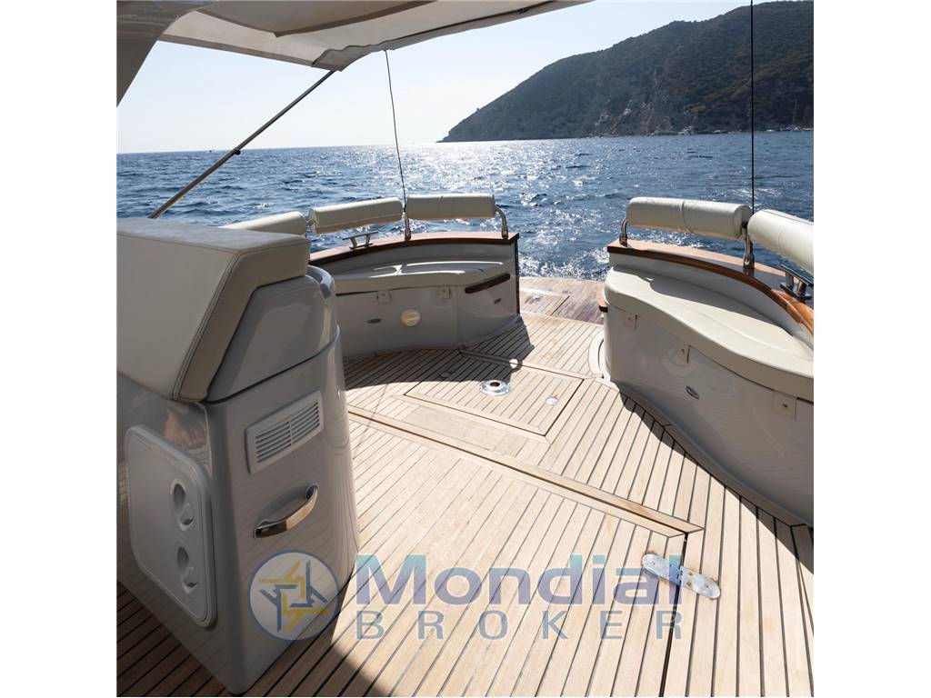 Notas internasPozzetto spazioso con tavolo e sedute. Tendalino in pozzetto Prendisole a prua Notas de la instrumentaciónImpianto stereo BluetoothPrese usb Strumentazione Simrad Pilota Automatico Garmin Radio fissa e Radio portatile Notas de armamentoFrigo esterno , Cuscineria nuova , Doccetta esterna, Bagno interno, Salpa ancora elettrico con pulsanti a piede, Elica di prua, coperta in teck.Dotazioni bordo oltre le 12 miglia Zattera oceanica per 6 persone |