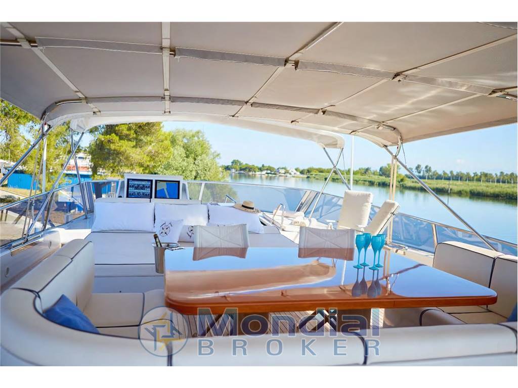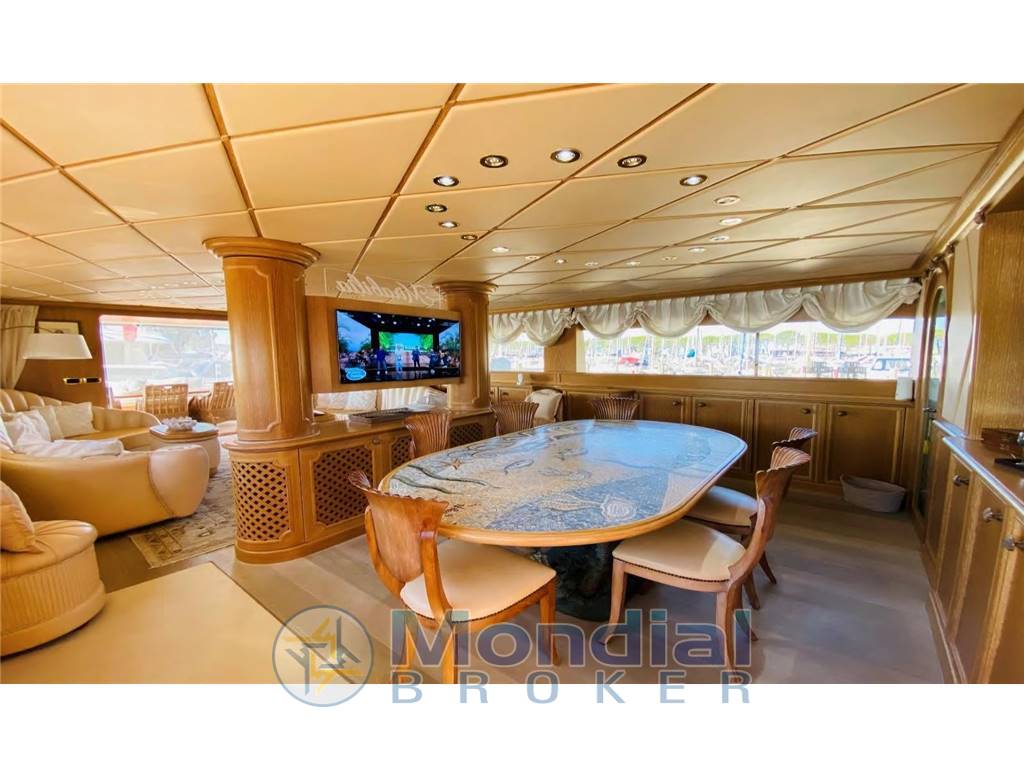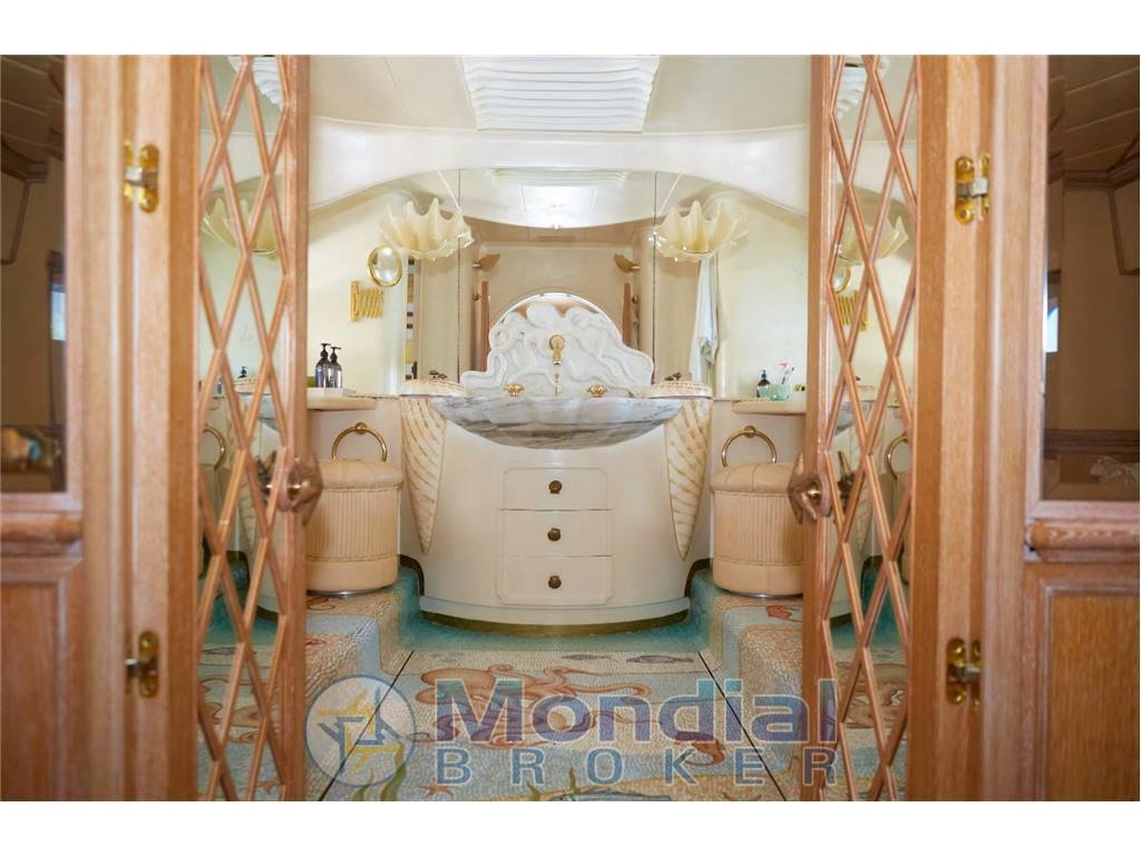 Notas internasSuite Armatoriale a prua matrimoniale con bagno con pavimento in mosaico, lavabo in marmo di Carrara, wc, bidet e box doccia. 2 Cabine ospiti doppie, ognuna con letto pullman e bagno . Day toilet. 1 Cabina marinaio doppia e 1 singola, ognuna con bagno con lavabo in marmo di Carrara, wc, bidet e doccia separata. Wc con scarico a vuoto. Cucina con piano cottura Miele in vetroceramica a 4 fuochi, frigorifero, congelatore, forno. Notas de la instrumentaciónPLANCIA: 7 schermi xlcd multi (GPS-Plotter/Radar/Eco/ecc.), Antenna radar Furuno 96nm, Navigatore Gps Furuno, Radar/Plotter Gps Furuno NavNet 3D, Navtex Furuno NX-500, Sailor Vhf + RE2100 compatto HF SSB, Inmarsat Nera, Telefono sat Motorola 2700, GPS-Plotter Geonav, Plotter Gps Loren, Plotter Gps Raymarine, Eco e Log B&G, AIS ed EPIRB, Autopilota Navicontrol AP3003, Bussola analogica, Interfono al fly-bridge e a tutte le cabine.FLY: 2 schermi con info GPS-Plotter, Radar e telecamere; VHF ICOM con altoparlante; Indicatore angolo timone; Ripetitore autopilota FURUNO; Controllo remoto proiettore; Comandi eliche prua e poppa; Strumenti motori; Indicatori acqua e carburante; Pannello con comando salpa ancora, flaps, ecc TVCC. Impianto antincendio con sistema rilevazione. Alternatori su entrambi i motori. Presa alimentazione da banchina 240v, Inverter 1x MASTERVOLT 24V/220Vac 2500W + 1x WAECO Sine Power MSP1524 24V/220Vca 1500W. Nr 2 Generatori KOHLER da 25 kW 50 Hz (ca.4500h), Nr 3 Caricabatterie Mastervolt. BATTERIE NUOVE 2023. Notas de armamentoSerbatoio acque nere 200lt, 2x Autoclave automatica, Sterilizzatore UV, 2x Boiler 110lt, Dissalatore Idromar HP 200lt/h, Aria condizionata Condiaria ciclo inverso, TV/SAT con decoder Sky, Lettore DVD, Impianto stereo/CD, Tv in ogni ambiente, Home theatre BANG & OLUFSEN, Internet Wi-Fi, IceMaker, Aspirapolvere centralizzato, Lavastoviglie, LavasciugaSalpancora elettrico Lofrans con capestano e telecomando a prua, 2 verricello d'ormeggio Lofrans a poppa, Ancora acciaio zincato CQR 180libbre con catena acciaio zincato 150m, Ancora di riserva CQR, Sistema lavaggio ancora e catena (acqua di mare); Gavone catena. Fly con divano a U e tavolo in legno massello, prendisole rialzato + prendisole zona prodiera fly, bimini top e mobile bar con lavello e frigo, Postazione di guida con doppio sedile e consolle strumenti, provvista di copriconsolle, Gru idraulica BESENZONI per alaggio/varo tender. Prendisole con cuscineria imbottita a prua, Pozzetto autosvuotante a poppa, Tavolo pozzetto in legno massello con 5 sedie, Doccia con acqua calda e fredda a poppa, Scaletta da bagno, Piattaforma da bagno, Passerella idraulica PINCRAFT retrattile con carabottino in teak e appositi candelieri (asportabili). Luci subacquee a poppa. Tender Novurania 5mt + FB Mercury 40hp. Scaletta d'imbarco. |