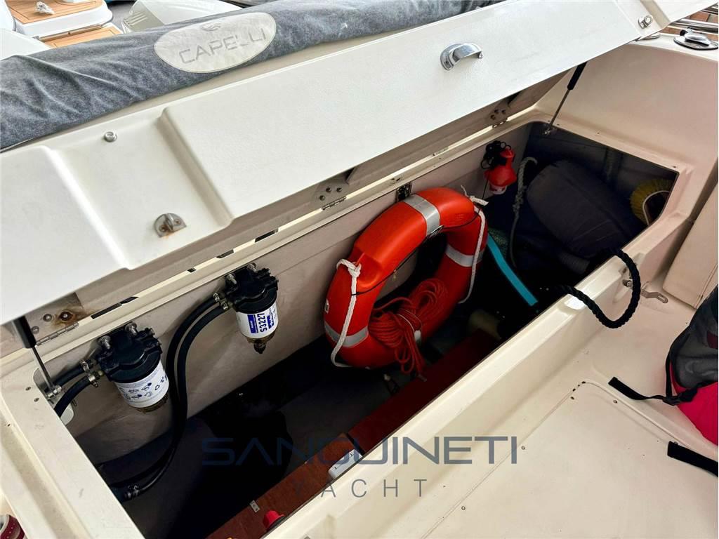 Notas internasGli interni della Capelli 27 sono progettati per offrire comfort e funzionalità. La cabina trasformabile a prua permette di ottimizzare lo spazio per diverse esigenze, mentre il bagno separato garantisce privacy e comodità. La cucina è ben attrezzata per preparare pasti a bordo, rendendo la barca perfetta per le uscite di più giorni. Gli interni sono stati mantenuti in ottime condizioni, riflettendo la cura con cui la barca è stata gestita.