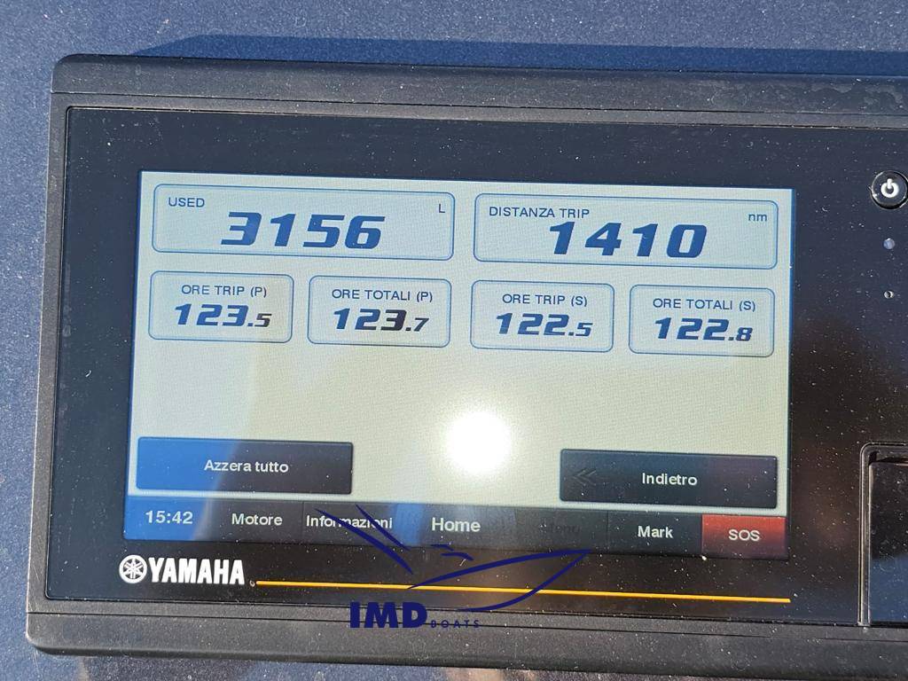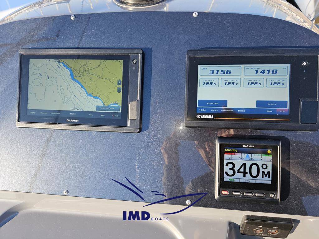 Notas internasDoccia(60lt approssimativi) Frigorifero (48lt approssimativi) Gonfiatore (elettrico) Kit plancette poppa Luci di navigazione Musone prua VTR Panca guida Pannello elettrico Parabrezza Pompa sentina (automatic) Pulpito inox prua Pussola Rivestimento flexiteek trincarini Scaletta Serbatoio benzina (370 approssimativi) Tavolo Timoneria idraulica Verricello elettrico WC con serbatoio acque nere Telo copri consolle e sedili Prendisole addizionale poppa Notas de la instrumentaciónPlotter Garmin 922xsv (eco-gps) con trasduttore poppiero GT51Pilota Automatico Garmin Ghc 20 Carica batterie 220V Elettroidroguida Power steering Assist |