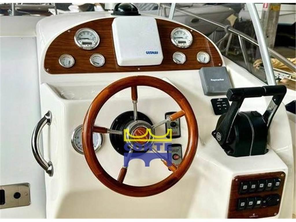 Notas internasBagno separato. Cucina è ben attrezzata. Ampio prendisole. Grande pozzetto. Notas de la instrumentaciónBussola, Ecoscandaglio, Log, Plotter con antenna GPS, Radio VHF.Notas de armamentoAllestimento tecnico e di coperta:Ancora (inox con catena inox), Doccia esterna, Flap idraulici, Luci di cortesia (esterne), Presa 220V banchina, Salpa Ancore Elettrico, Scaletta da bagno. Dotazioni domestiche di bordo: Pavimento interno in legno. Intrattenimento: Altoparlanti, Stereo. Cucina ed elettrodomestici: Cucina, Fornello, Frigorifero interno. Tappezzerie: Cuscineria completa, Tendalino. |
