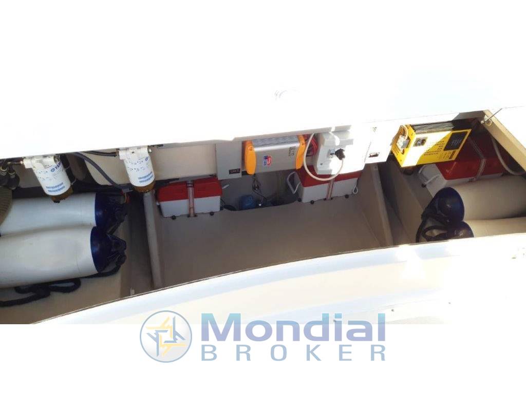 Notas de armamentoCompleta di:Aria condizionata Spiaggette maggiorate di poppa Gps Whf Tendalino prendisole maggiorato Salpa ancora elettrico Conta catena Impianto stereo TV Inverter Chiusura totale bimini Coperture estive e invernali Estensione prendisole di poppa Fari di profondità led multicolore. Bagno separato con maceratore elettrici Doppia timoneria idraulica Sea star |