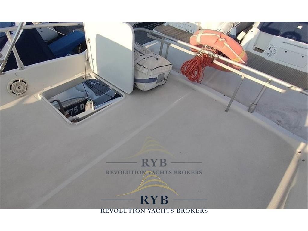 Notas internasNotas de la instrumentaciónBussola, Ecoscandaglio, Plotter con antenna GPS, Radio VHF.Notas de armamentoAllestimento tecnico e di coperta:Ancora (DI RISPETTO), Faro orientabile, Passerella (IDRAULICA), Piattaforma (TEAK), Pozzetto Teak, Presa 220V banchina, Ripetitore strumentazione (FLY), Salpa Ancore Elettrico, Scaletta da bagno. Dotazioni domestiche di bordo: Pavimento interno in legno, Prese interne 220v. Intrattenimento: Altoparlanti, Impianto TV, Stereo, TV. Cucina ed elettrodomestici: Cucina, Frigorifero interno. Tappezzerie: Cappottina, Cuscineria completa, Tendalino. |
