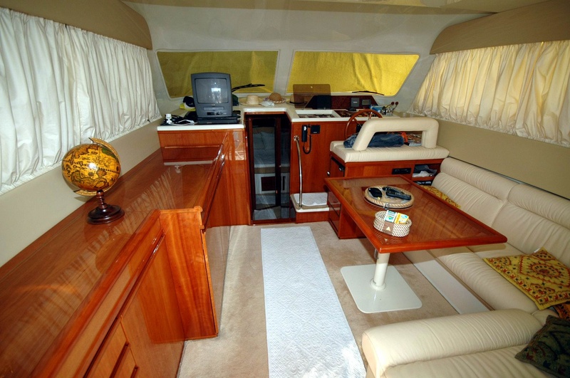 Notas internasNotas de la instrumentaciónShipmate doble estación VHF - Sonda - mapas de GPS con la estación dual - se repite en el piloto automático Raytheon volar - 3,5 KW Generator - Cargador - Cable TV - lancha fuera borda de casco rÃgido de 3,5 HP - Besenzoni pasarela hidráulica - Molinete eléctrico - proa y cojines volar completa - cierre del dosel de invierno / verano - Bimini en fly - balsa de 8 personas - ducha de agua caliente exterior - flaps hidráulicos - cabina de teca --Notas de armamentode todos los años aparcamiento cubierto - Casco de 2006 - contrato de arrendamiento expira italiano en febrero de 2007 más de 2.100 euros mensuales -- |