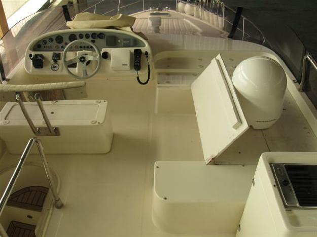 Notas internasNotas de la instrumentación2 Brújulas de VHF con antena externa GPS Chart Plotter Radar piloto automático, sonda registro cuenta km tridata motor electrónico instrumentación cadena comandos y repiten en radio estéreo Hi-Fi volar con altavoces interiores y exteriores Tv con antena parabólica No 2 Lcd Tv en salón y armador aletas torno hidráulico de electro electro-hidráulico con control remotoNotas de armamentoGENERADOR de 6 kW/H aire acondicionado con calefacción termostatos reversible arco apoyo ambiental hélice BESENZONI pasarela con remoto Faro de noche MINI gran nevera pequeña INTERIOR EXTERIOR accionada eléctricamente investigación cobertura del dosel de Bimini en las almohadillas de timón FLYBRIDGE interior cabina cojines-cubierta de proa cojines, calientes y frÃa ducha en cabina 12v 24v sistema, enchufe de v de cd 220 220v sistema de herramientas de interruptor de baterÃa de muelle agua dulce agua oscura tanque el tiempo en toldo eléctrico wc caseta ancla hidráulica w. cabina de plataforma teca de nado cadena cubierta de teca Sunpad equipament (a ser verificado) con garantÃa |