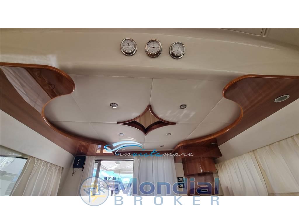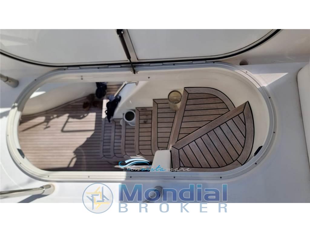 Notas de armamentoAltoparlanti, Antenna Satellitare TV, Aria condizionata, BBQ/ Grill, Bimini, Boiler, Clima reversibile, Copripozzetto, Cucina, Cuscineria completa, Cuscineria di poppa, Cuscineria di prua, Cuscineria fly, Dotazioni di sicurezza entro 12 miglia, Fornello, Forno, Frigorifero esterno, Frigorifero interno, Impianto TV, Inverter, Microonde, Oscuranti, Prese interne 12v, Prese interne 220v, Radio AM/FM, Serbatoio Acque Nere, Stereo, Teli copri finestra, WC marino elettrico, Zattera di salvataggio