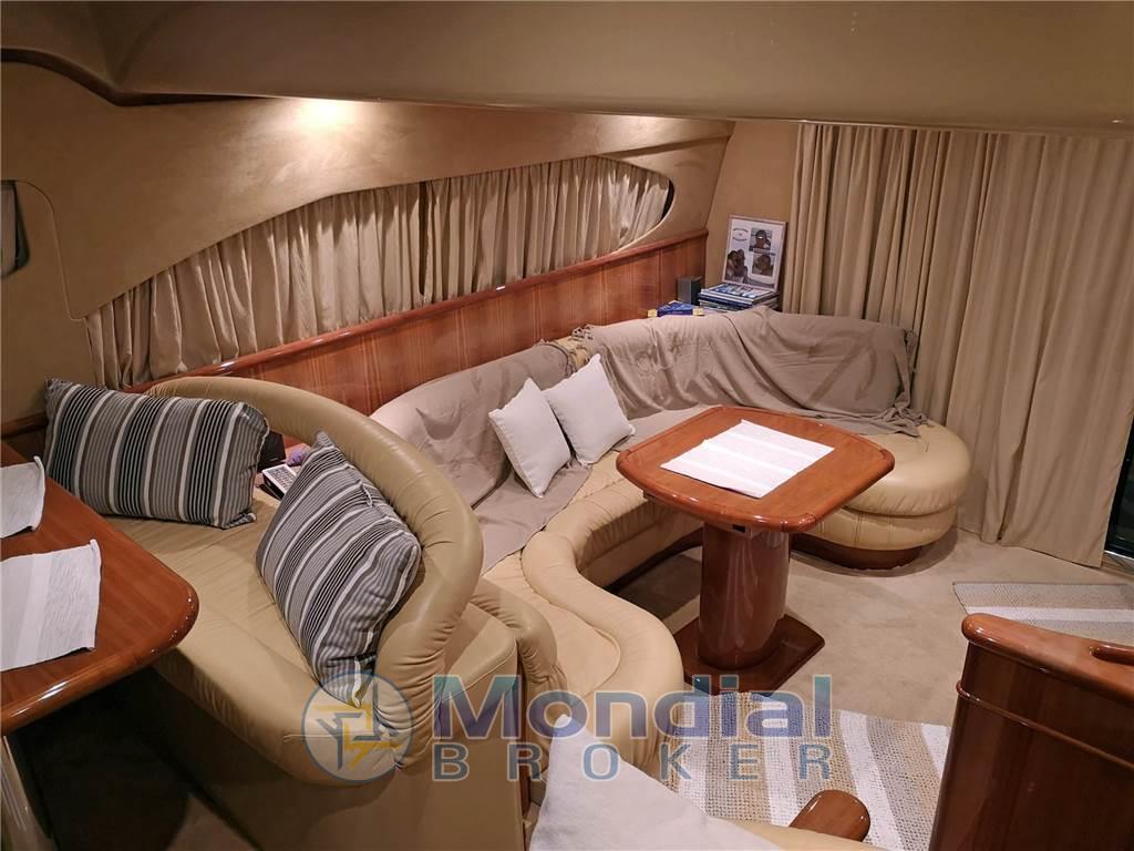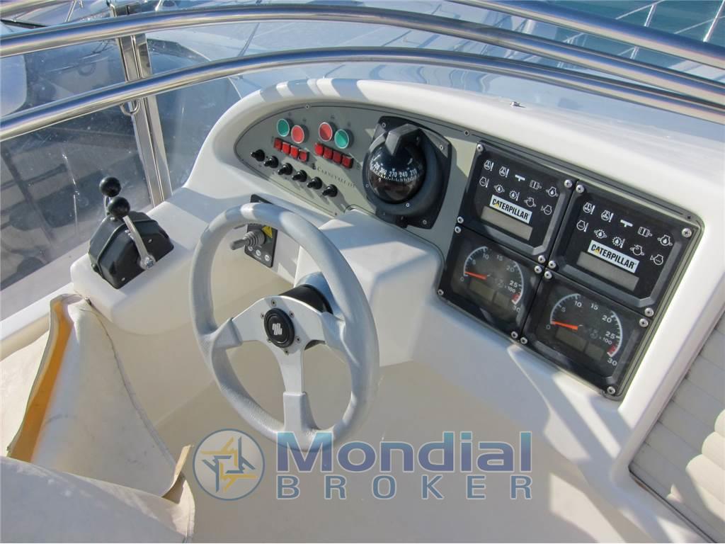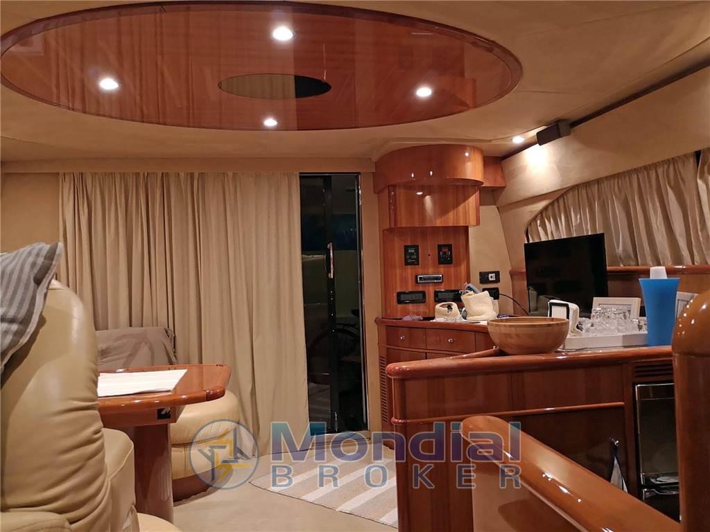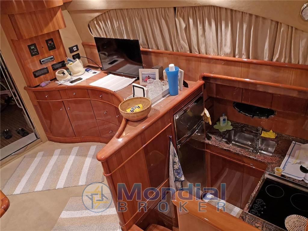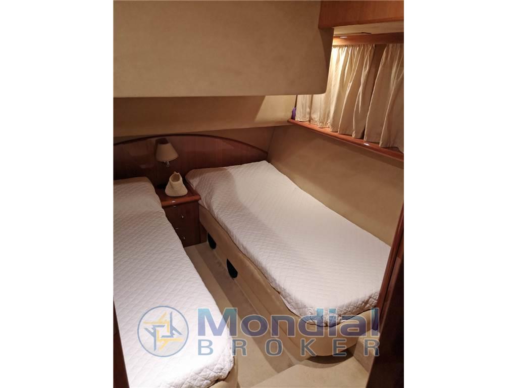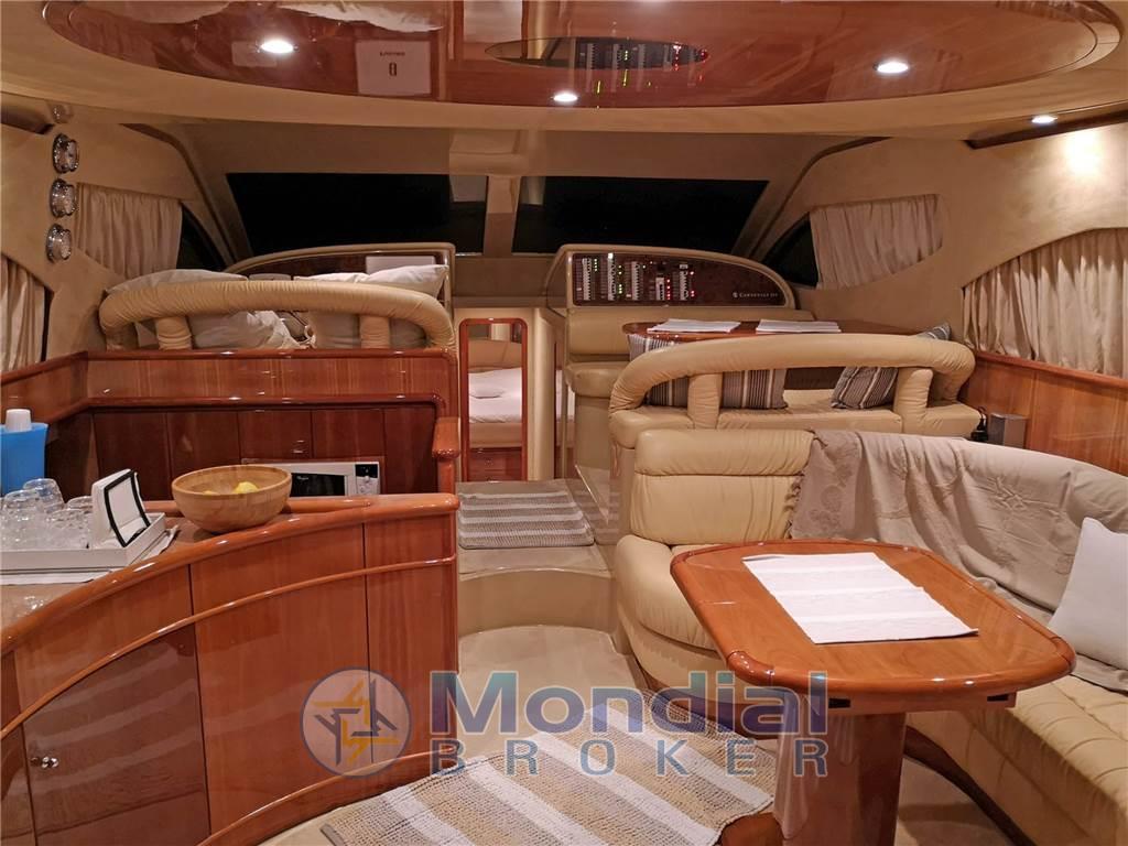 Notas internasNotas de la instrumentaciónAngolo barra, Antenna radar, Bussola, Comando motori elettronico, Computer di bordo, Contamiglia, Display, 2 Ecoscandaglio, 2 GPS (MULTIF FURUNO NAV NET), Log, 2 Pilota automatico (AP3030 GOLD), Radar (FURUNO), 2 Radio VHF (RAYMARINE SHIPMATE RS 8400).Notas de armamentoAllestimento tecnico e di coperta:Allarme motore, Allarme sentina, Autogonfiabile, Caricabatterie (MASTERVOLT CHARGERMASTER), Doccia esterna, Doppia timoneria, Elica di poppa - stern thruster (SIDE POWER), Elica di prua - bow thruster (SIDE POWER), Faro orientabile, Flap idraulici, Impianto antincendio, Indicatori Flaps, Luci di cortesia, Luci subacquee, Passerella (Idraulica), Piattaforma, Pompa di sentina automatica, Pompa di sentina manuale, Pozzetto Teak, Presa 220V banchina, Raddrizzatore, Rollbar, Salpa Ancore Elettrico, Scaletta da bagno, Sistema Depurazione acque nere, Tavolo pozzetto, Tromba, Winch, Winch tonneggio di poppa, Winch tonneggio di prua. Dotazioni domestiche di bordo: Aria condizionata (CONDARIA 30000 BTU), BBQ/ Grill, Clima reversibile, Impianto acque nere, Prese interne 12v, Prese interne 220v, 3 WC marino elettrico. Intrattenimento: Altoparlanti, Antenna Satellitare TV, Decoder satellite, Digitale Terrestre, DVD, Impianto TV, 4 Radio AM/FM, 4 Stereo, TV. Cucina ed elettrodomestici: Cucina, Fornello, Frigorifero esterno, Frigorifero interno, Ghiacciaia, Piastra elettrica, Piastra in vetroceramica. Tappezzerie: Bimini, Cuscineria completa, Cuscineria di poppa, Cuscineria di prua, Cuscineria fly, Cuscineria Pozzetto, Teli chiusura T-Top, Teli copri finestra, Telo Copertura Fly, Telo copriconsolle, Telo coprisedile, Tendalino. |