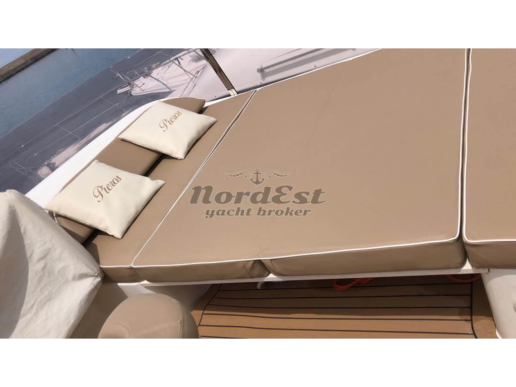 Notas internasAria condizionata: tutti gli ambienti Interni: DESCRIZIONE INTERNI tre cabine in piano e due servizi con bidet e box doccia. Cabina marinaio con aria condizionata e wc separato. ----- Mobile bar Antenna TV satellitare Impianto stereo Impianto TV Tv Bagno equipaggio Bagni: 2 Cabina equipaggio Cabine: 3 Posti letto: 6+2 Cucina Forno: Presente Frigorifero Piano Cottura: 1 Notas de la instrumentaciónPilota automatico: Presente Ecoscandaglio: Presente GPS: Presente Plancetta: in teak Radar: Presente Strumenti vento Vhf: Presente Notas de armamentoImpianto antincendio Bimini top: in acciaio doppio Copertura pozzetto Cuscineria prendisole Doccia esterna Elica di manovra a poppa: Presente Elica di manovra a prua: Presente Faro orientabile Flaps Frigorifero esterno Luci di cortesia Zattera di salvatagio |