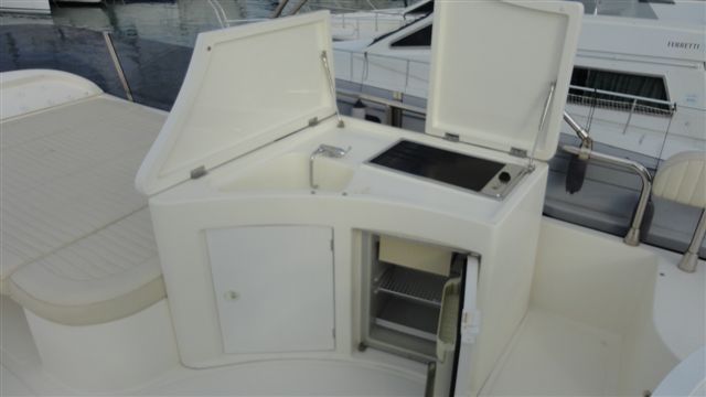 Notas de armamentoBow thruster generador 8 Kw Mase-aire acondicionado/calefacción-desalado-re-lavar plato de la máquina lavadora-teak Cockpit-Cabañas-reflector-Bimini vidrio superior cubierta hojas hidráulico eje retráctil sellos cabrestantes popa-nevera y parrilla en el fly-Bridge-idrautica-cuero-comedor del compartimiento refrigerador-microondas-VTRC placa 4 quemadores-TV en el comedor-TV en otras cabañas-baños con terrazas de bidé-amortiguador.