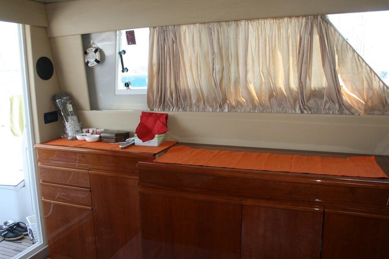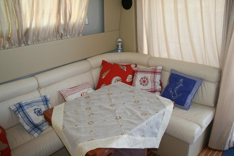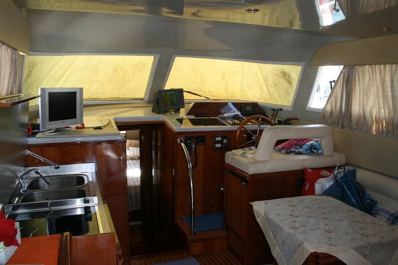 Notas internasCocina retráctil a la izquierda. Gran comedor con piso de teca en todo el barco. Teca teca teca. GuÃa a la derecha, con cojines nuevos. Instrumentación general