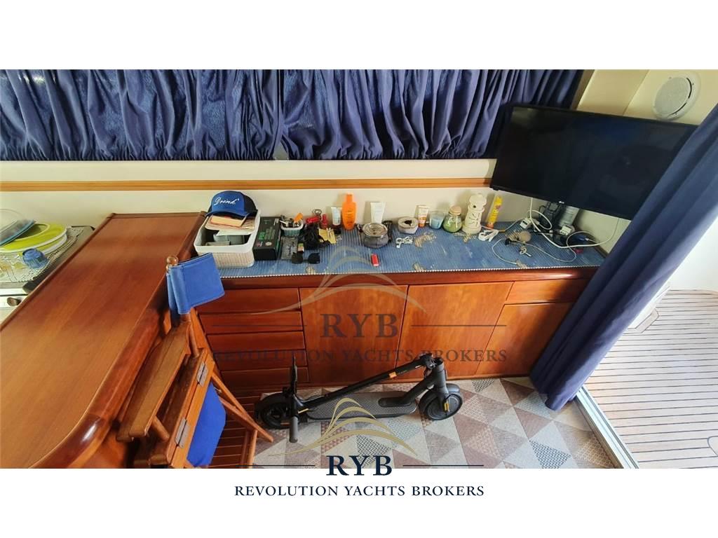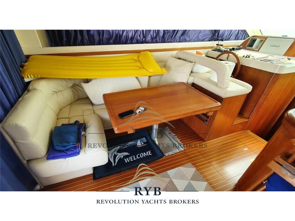 Notas internasNotas de la instrumentaciónAngolo barra, Antenna radar, Bussola, Contamiglia, Ecoscandaglio, GPS, Pilota automatico, Plotter, Radio VHF.Notas de armamentoAllestimento tecnico e di coperta:Ancora, Camminamenti laterali in teak, Doccia esterna, Doppia timoneria, Elica di prua - bow thruster, Faro orientabile, Flap idraulici, Impianto antincendio, Indicatori Flaps, Passerella (IDRAULICA), Piattaforma, Pompa di sentina automatica, Pompa di sentina elettrica, Pompa di sentina manuale, Porta ingresso, Pozzetto Teak (2023), Presa 220V banchina, Raddrizzatore, Rollbar, Salpa Ancore Elettrico, Scaletta da bagno, Tavolo Salone Abbattibile, Tender, Tromba, Winch tonneggio di poppa. Dotazioni domestiche di bordo: Aria condizionata, Clima reversibile, Impianto acque nere, Pavimento interno in legno, Prese interne 12v, Prese interne 220v, Serbatoio Acque Nere, 2 WC marino elettrico. Intrattenimento: Altoparlanti, Impianto TV, Radio AM/FM, Stereo. Cucina ed elettrodomestici: Cucina, Fornello, 2 Frigorifero interno. Tappezzerie: Bimini, Copripozzetto, Cuscineria completa, Cuscineria di poppa, Cuscineria di prua, Cuscineria fly, Cuscineria Pozzetto, Telo Copertura Fly, Tendalino. |