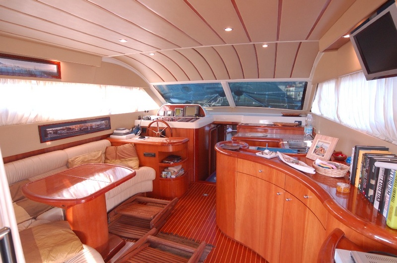 Notas de armamentoDOBLE hélice de proa/AFT maniobra esposas VETUS ELTTRONICHE VOLVO eléctrico SEARCHLIGHT EMI 6KW generador doble aire acondicionado ciclo CLIMMA BAITEK desalinizadora 80 LT/H seguro TVSAT mamÃfero-decodificador SKY DVD/CD PLAYER-2 LCD TV colores PASSERELLA IDRAULICA BESENZONI 1 telescópico deformación cabrestante arandelas popa MINIBAR equipado FLYBRIDGE BIMINI TOP toldos-seguridad equipo y completa oferta 2009