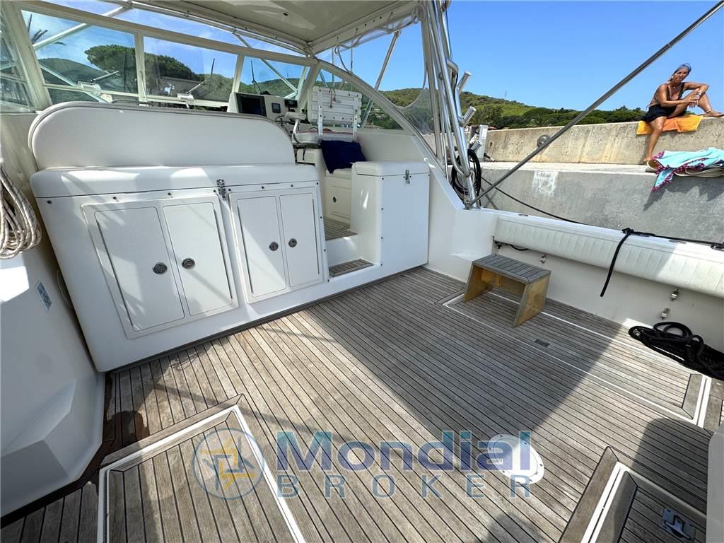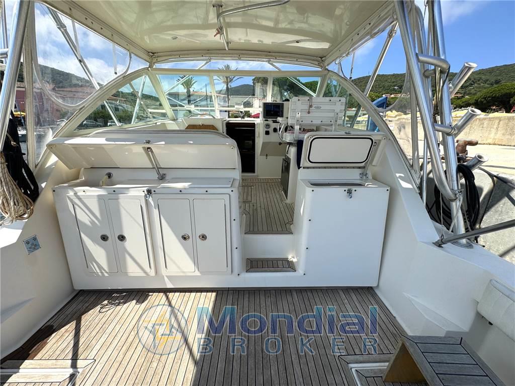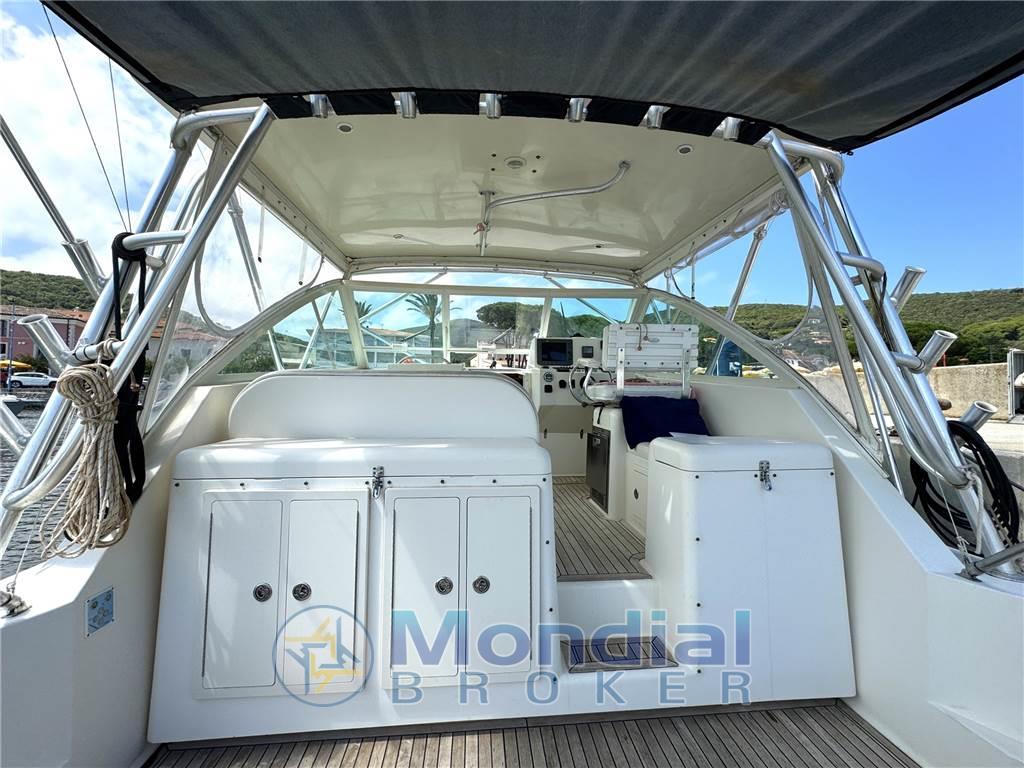 Notas internasNotas de la instrumentaciónAngolo barra, Bussola, Contamiglia, Ecoscandaglio, GPS, Pilota automatico, Plotter, Radar, Radio VHF.Notas de armamentoAllestimento tecnico e di coperta:Allarme motore, Allarme sentina, Apertura Vano Motore Elettrica, Doccia esterna, Elica di prua - bow thruster, Faro orientabile, Flap idraulici, Indicatori Flaps, Passerella (idraulica), Piattaforma (acciaio e teak), Pompa di sentina elettrica, Pompa di sentina manuale, Pozzetto Teak, Presa 220V banchina, Salpa Ancore Elettrico, Scaletta da bagno, T-Top. Dotazioni domestiche di bordo: Clima reversibile, Impianto acque nere, Prese interne 12v, Prese interne 220v, Serbatoio Acque Nere, WC marino elettrico. Intrattenimento: Altoparlanti (int. est), Impianto TV, Stereo, TV. Cucina ed elettrodomestici: Fornello, Frigorifero esterno, Ghiacciaia. Tappezzerie: Cappottina, Cuscineria Pozzetto. |