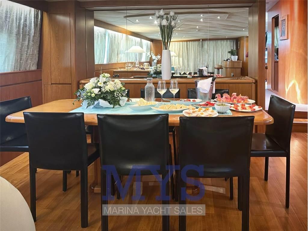 Notas internas2 Doppia in piano 2 Cabina equipaggio 4 Toilette con doccia 1 Toilette servizio 1 Cucina attrezzatissima 1 Salone 1 Toilette Equipaggio Notas de la instrumentaciónAISAllarme fumo/gas, Allarme motore Allarme sentina 2 Ancora Angolo barra Antenna radar Autoclave Batterie Bocche di Lupa 2 Bussola Camminamenti laterali in teak Caricabatterie Computer di bordo Doccia esterna Doppia timoneria Ecoscandaglio Elica di prua - bow thruster Faro orientabile Flap idraulici 2 GPS Gruette per tender su fly Impianto antincendio Impianto Aria Compressa Indicatori Flaps Lavaggio catena Luci di cortesia Passerella (idraulica a scomparsa) Piattaforma (Da bagna a poppa) 2 Pilota automatico (2 stazioni) Plotter con antenna GPS Pompa di sentina automatica Pompa di sentina elettrica Pompa di sentina manuale Porta ingresso Porta laterale Pozzetto Teak Presa 220V banchina Presa acqua banchina Radar Raddrizzatore 2 Radio VHF Salpa Ancore Idraulico Scala reale Selle per Tender Tavolo pozzetto Telefono satellitare Tender Tromba Winch Idraulico Winch tonneggio di poppa Winch tonneggio di prua Notas de armamentoAltoparlantiAntenna Satellitare TV Aria condizionata Asciugatrice Barometro BBQ/ Grill Bimini Binocolo Boetta fumogena Boiler Carte nautiche Cassaforte Cassetta di pronto soccorso Cinture di salvataggio Clima reversibile Congelatore Cucina Cuscineria completa Cuscineria di poppa Cuscineria di prua Cuscineria fly Decoder satellite Dissalatore Dotazioni di sicurezza oltre 50 miglia E.P.I.R.B. Forno Frigorifero esterno, Frigorifero interno Fuochi a mano a luce rossa Giubbetti di salvataggio ICE Maker Impianto acque nere Impianto TV Inverter Lavasciuga Oscuranti Pavimento interno in legno Piastra elettrica Prese interne 12v Prese interne 220v Radio AM/FM Razzi a paracadute a luce rossa Ricevitore satellitare Riflettore Radar Salvagente anulare con cima munita di boetta luminosa Serbatoio Acque Nere Stereo Strumenti da carteggio Telefono Interno Telo Copertura Fly, Tendalino TV 6 WC marino elettrico Zattera di salvataggio |