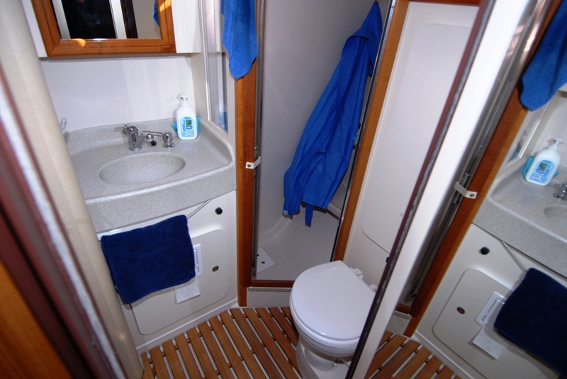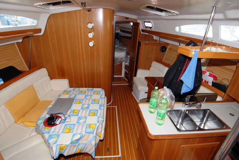 Notas internasCabina doble proa a popa de cama doble cabina con cama doble-jefes inclinarse con doble acceso y duchas-comedor convertible en cama y dos sillones con mesa al lado de starboard convertible sofá/cucccetta-gran cocina con gas encimera gas acero inoxidable horno doble lavabo encimera gran refrigerador con carga frontal y cabina microondas pie agua dulce 220v bomba -
