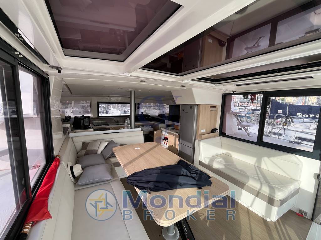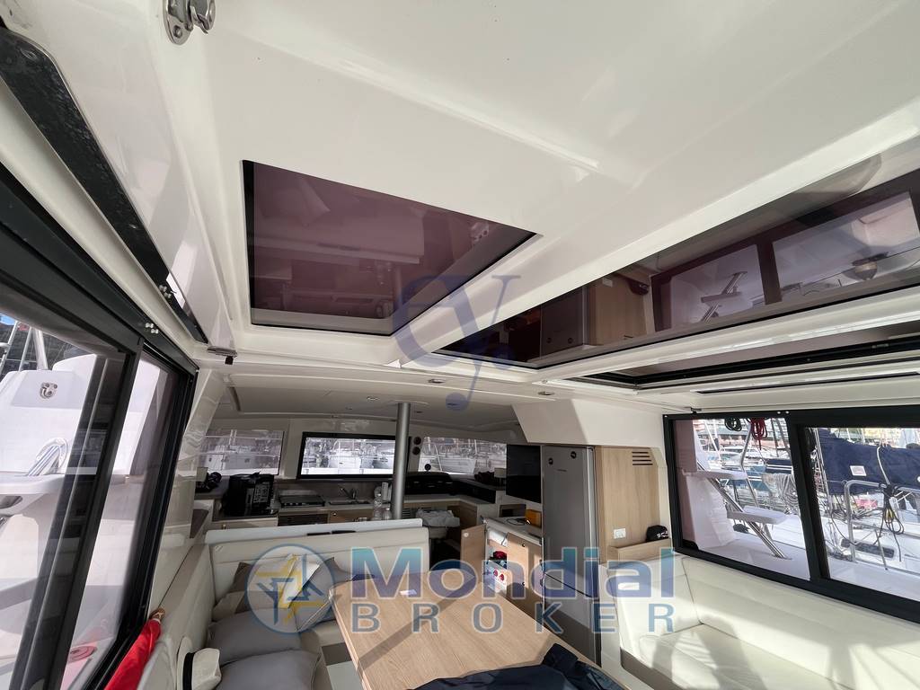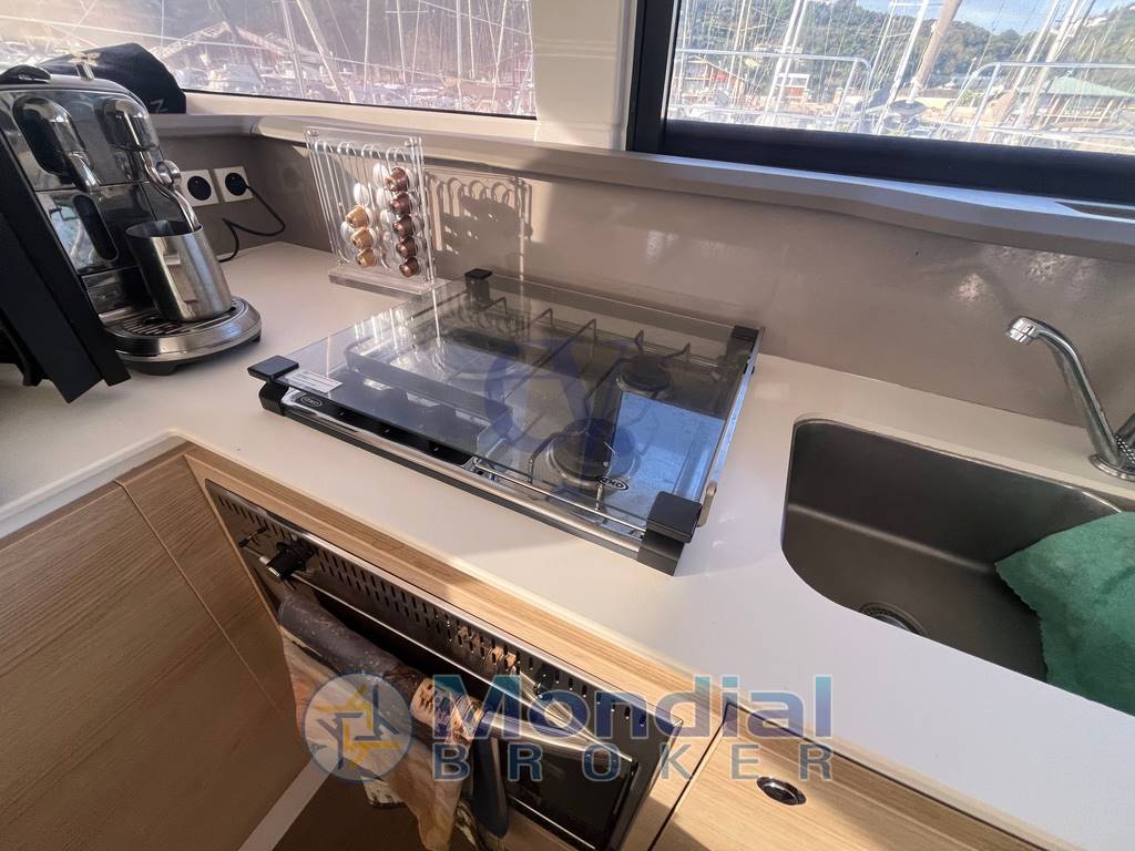 Notas internas4 cabine matrimoniali speculari.? 2 bagni con WC manuale e doccia Dinette configurabile in salone con letto matrimoniale. Cucina equipaggiata con lavello,piano cottura,frigorifero e forno.Tavolo carteggio.Ampio gavone in pozzetto ed a prua.?Cucina completa di lavello, forno a gas e fuochi, frigo con congelatore?Interni in rovere chiaro?Ampio tavolo dinette ?Vetro di prua apribile