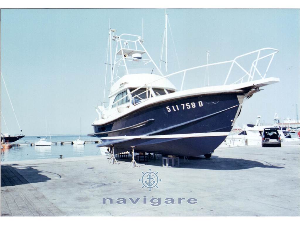 Notas internasdx - bagno con doccia e lavello - 2 ampie cuccette - vari gavoni - sx - cabina ospiti con armadio e gavoni - (letto matrimoniale) cabina padronale con bagno t tv - armadietto - cassettiera - vari-sportelli e grandissimo gavone a due piani - Notas de la instrumentaciónimpianto acqua calda da so lt.copri finestre per esterno anche parabrezza serbatoio maggiorato a 2000 lt gasolio gruppo elettrogeno Mase voyager 2800 antenna tv - con tv cabina patronale con video cassetta autopilota furuno mod. fap 330 anche sul fly bridge radar furono mod.1731 + tracciatore radar rp 100 video gps garkin per la navigazione - plotter - vhf furono mod.fm 2510 radio telefono ssb 150w modello fs 1550 (ricezione ~p 300miglia ecoscandaglio a colori 450 mt. radio cassette + caricatore cd n.3 fari da 500w montati sul Tuna Tower Notas de armamentoaccessori extra montatipasserella in vetroresina da 3 mt. gruette cuscino prendisole a prua plancetta ui poppa in vetroresina e teak e scaletta mare inox forno elettrico e bistecchiera faro elettrico 12 w orientabile in plancia pompa elettrica per lavaggio pozzetto rastrelliera per porta canne da riposo cassa del pescato con impianto frigo n.02 zattere autogonflabili omologate r.i.n.a. per 8 persone c.da i |